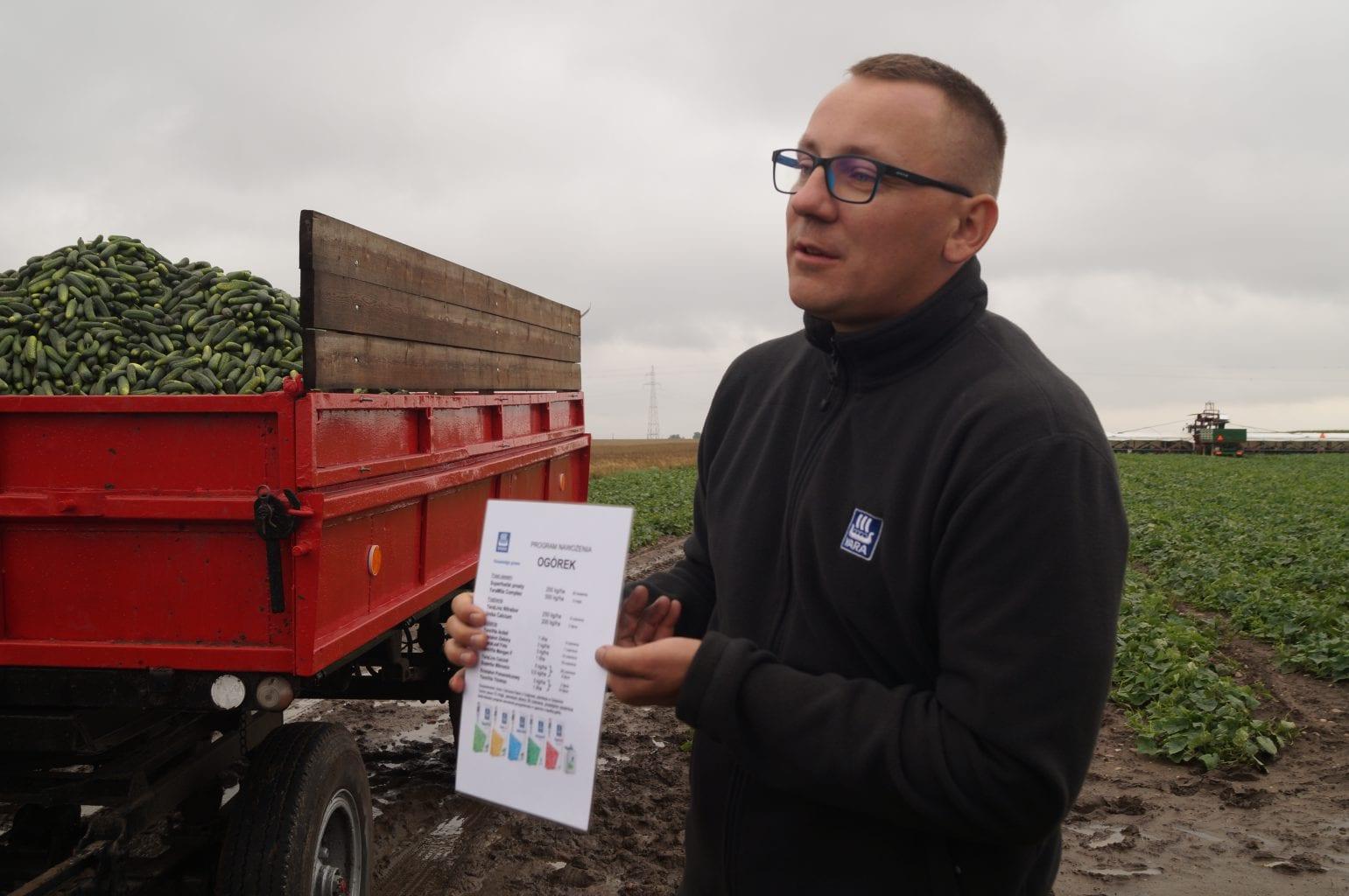 Efektywność nawożenia ogórków była tematem wystąpienia Wojciecha Kopeć z firmy Yara Poland. Na podstawie wyników analizy gleby wykonanej w kwietniu br. przygotowano indywidualny program nawożenia. Dwa tygodnie przed siewem nasion do gruntu zastosowano superfosfat w ilości 200 kg/ha oraz nawóz YaraMila Complex (500 kg/ha; 12% N, 11% P2O5 i 18% K2O), granulowany o dobrej rozpuszczalności w wodzie. Pogłównie zastosowano 250 kg nawozu YaraLiva Nitrabor (6 czerwca) i 200 kg Unika Calcium (2 lipca). Około trzy tygodnie po wschodzie nasion zastosowano dolistny preparat krzemowy YaraVita Actisil (1l/ha), poprawiający kondycję roślin. Z kolei w okresie dorastania owoców zastosowano saletrę wapniową przemiennie z nawozem YaraLiva Superba Mikromix. Seria YaraVita wyróżnia się produktami bogatymi w mikroelementy. Do jednych z nich należy YaraLiva Thiotrac silnie skoncentrowana, płynna formulacja, zawierającą czystą siarkę (200 g/l).