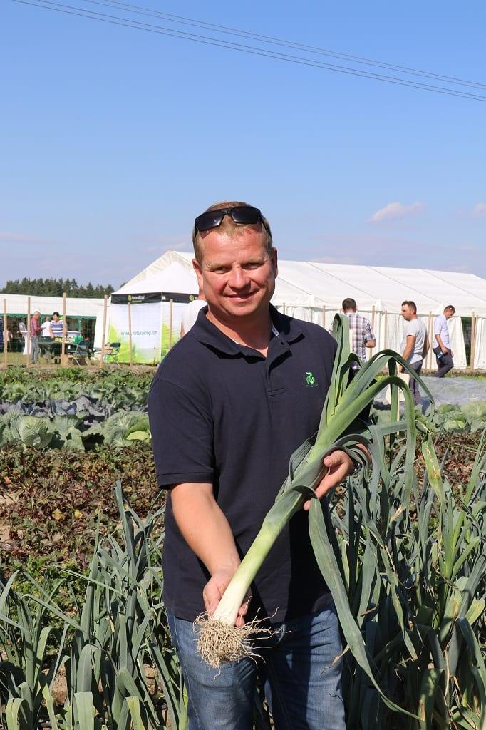 Podczas eko spotkania w gospodarstwie Danuty i Romana Osińskich w miejscowości Płonne Michał Jankowski oprowadzał producentów po kolekcji sałat polecanych do uprawy ekologicznej.