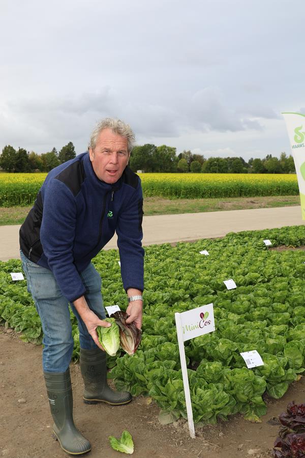 Syngenta – na polach należących do gospodarstwa braci Bakker w Wervershoof przygotowała sporą kolekcję różnych gatunków warzyw – przede wszystkim kapustnych, ale również sałat, kukurydzy, cukinii i cebuli. Z nowości Mariusz Kwiatkowski z Syngenta Poland prezentował w pierwszej kolejności odmianę kalafiora Andromeda z genem białości, której róże nie żółkną pod wpływem słońca. Ponadto zwrócił uwagę na ciekawostki, takie jak gatunek podobny do jarmużu, ale o mniej pokarbowanych liściach – Frivole – występujący w trzech odmianach barwnych – o liściach zielonych, różowych i intensywnie czerwonych. Pokazał również kapustę brukselską o czerwonych pąkach – Redarling. Z nowości wśród odmian wczesnych kapusty głowiastej białej polecał on SGW0331 oraz W0545 – o małych główkach. Uwagę zwiedzających przyciągał kolorowe odmiany kalafiorów o żółtych, zielonych i fioletowych różach, z tym, że jak podkreślali przedstawiciele odmiany te stanowią niewielki udział w rynku. Z nowych propozycji odmian brokułów na świeży rynek promowano Beachy F1. Natomiast spośród nowości w odmianach kalafiora – odmianę dedykowana dla przemysłu – Rysy F1. Spośród nowych odmian kapust zwrócono uwagę na Adelco, a także Carbonara czy Toreador. Mariusz Kwiatkowski pokazał również gamę odmian sałaty kruchej – np. Ice Circle oraz Ice Wave – tworzące kształtne, szybko wypełniające się główki. Ciekawie prezentowały się również odmiany sałaty o czerwonych liściach, a także rzymskie i masłowe.