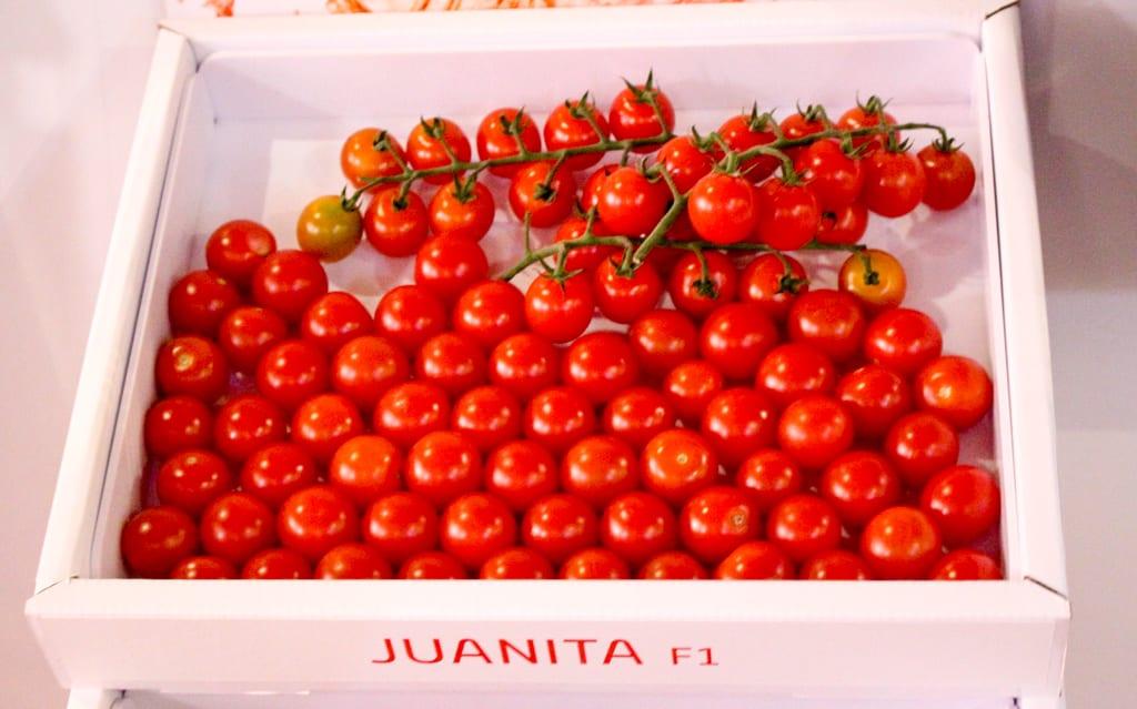 Zwiększa się również różnorodność na półkach sklepowych. Zmienia się struktura spożycia oraz produkcji pomidorów w Europie, nie obserwuje się natomiast zwiększenie ich konsumpcji. W Holandii w 2017 r. 40% powierzchni uprawy pomidora stanowiły odmiany specjalne. W tym segmencie oferta marki De Ruiter jest bardzo szeroka. Z pomidorów typu cherry o kulistych, czerwonych owocach prelegent polecał m.in. odmiany: Favorita F1 (owoce o masie 10–25 g do zbioru luzem), Conchita F1 (owoc 15–25 g, do zbioru w gronach lub luzem), DR0607TC F1 (owoc 10–20 g, do zbioru w gronach lub luzem), DRC 564 F1 (owoc 15–20 g, do zbioru w gronach lub luzem). Ciekawymi propozycjami odmian koktajlowych były czerwonowoocowe: Flavorino F1 (owoc 30–40 g do zbioru w gronach lub luzem), Kierano F1 (owoc 35–40 g, do zbioru w gronach ) i Timotion F1 (owoc 40–45 g do zbioru w gronach) oraz pomarańczowoowocowy Orangino F1 (owoc 35–45 g, do zbioru luzem). Specjalista zwracał także uwagę na odmiany innego typu o żółtym i pomarańczowym zabarwieniu owoców.
