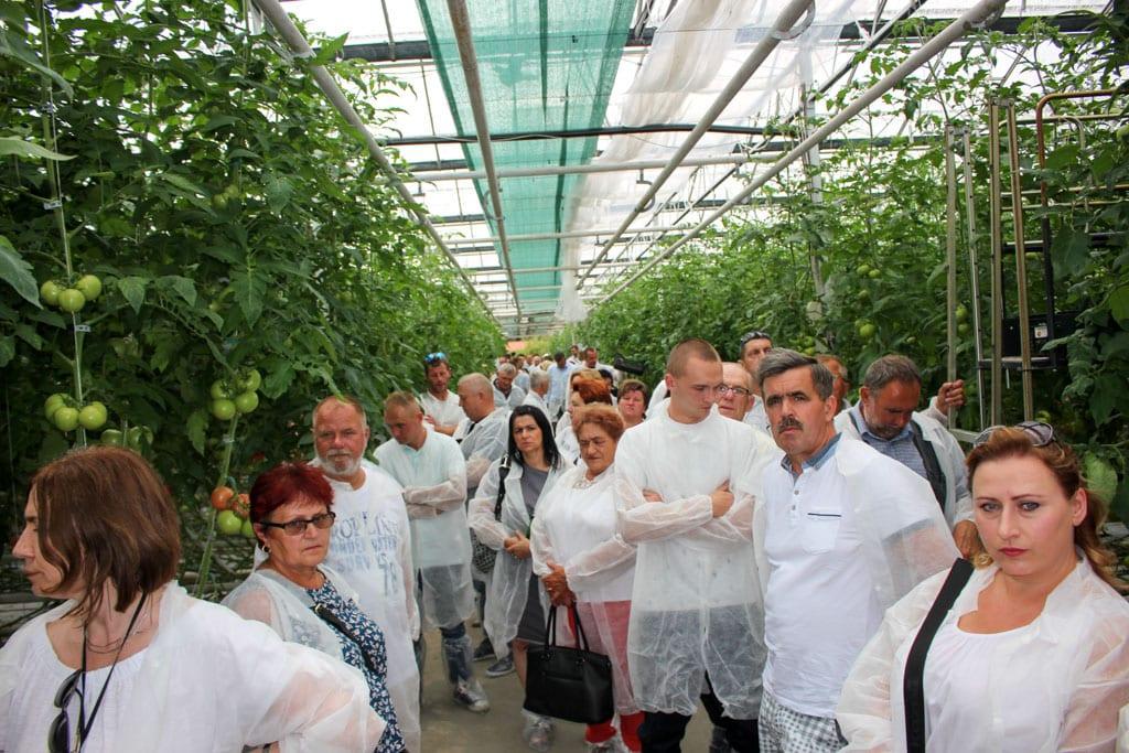 K. Kaczmarek przedstawiała również charakterystykę malinowej odmiany Polorosa F1, która została posadzona w gospodarstwie pod Ostrowem po raz drugi. W ubiegłym roku wykorzystano ją do uprawy jesiennej – jako podsadkę pod ogórka uprawianego wiosną. W tym roku odmiana posadzona została w lutym w cyklu przedłużonym. Polorosa F1 nadaje się zarówno do uprawy przedłużonej, jak i w krótkich cyklach (nasadzenia od połowy lutego do końca lipca). Rośliny odznaczają się silnym wigorem i zbalansowanym wzrostem, dobrze wiążą owoce przez cały okres uprawy. Są one kuliste, o masie od 160 do 220 g z lekkim ożebrowaniem, stosunkowo twarde i nie wykazują podatności na mikrospękania. Właściciel gospodarstwa zwracał uwagę na małą skłonność odmiany do suchej zgnilizny wierzchołkowej owoców i tworzenia żółtych przebarwień podczas upałów.