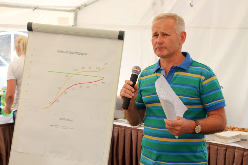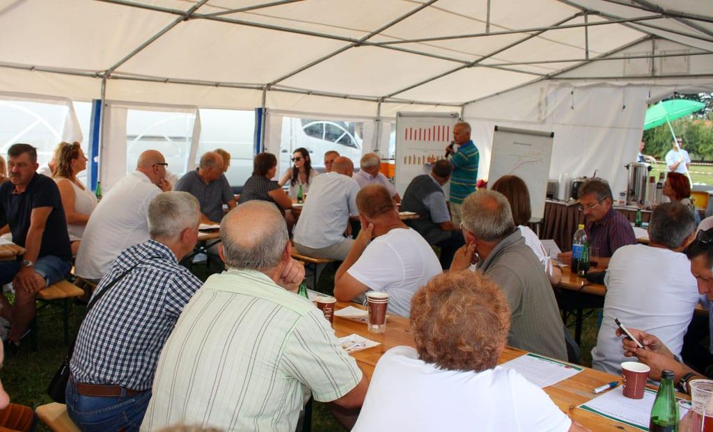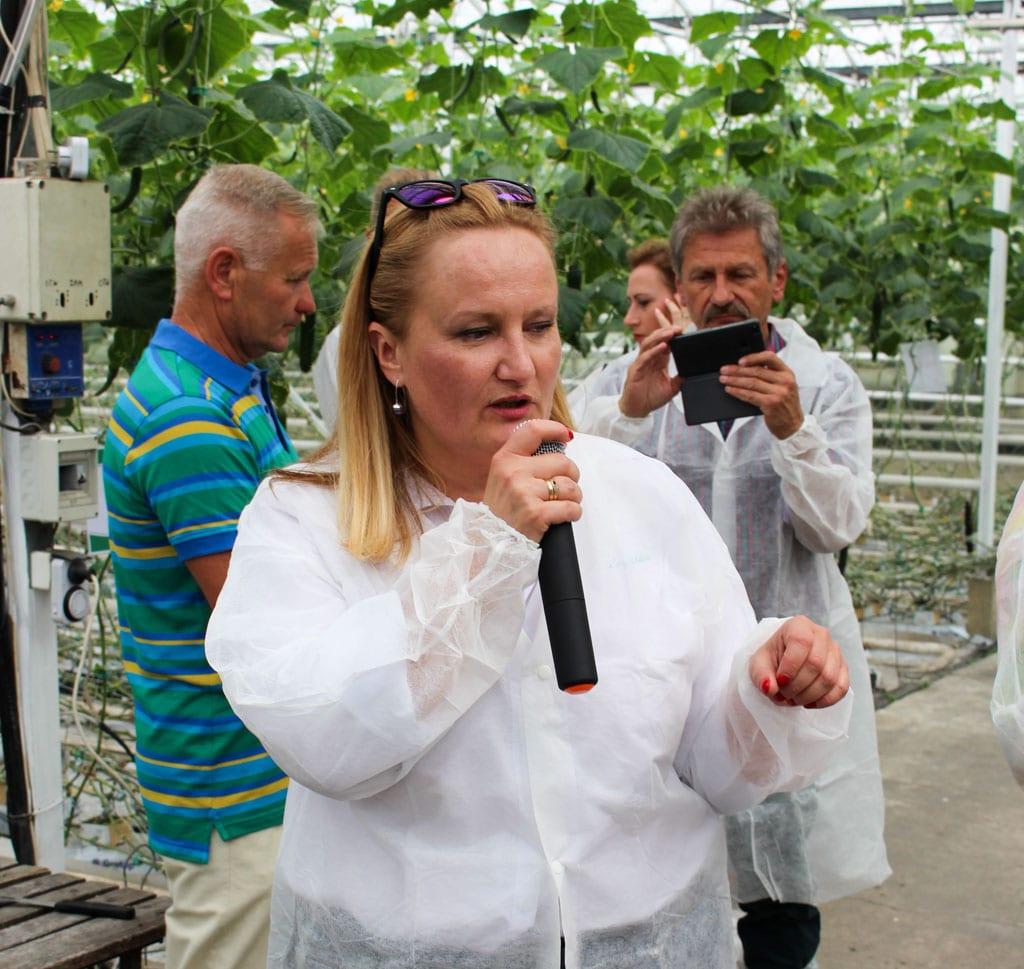 Podczas prezentacji szklarniowej, od której rozpoczęło się spotkanie, Katarzyna Kaczmarek z firmy W. Legutko podkreślała, że ogórek Haker F1 nadaje się do nasadzeń od początku lutego w szklarniach i od połowy lutego w tunelach foliowych. Plennością nie ustępuje odmianom zachodniej hodowli, cechuje ją ponadto wysoki plon wczesny. Owoce są ciemnozielone, z ożebrowaniem o długości 19–23 cm, bez skłonności do przerastania na długość latem. Gospodarz spotkania Lech Motylewski zaznaczał, że o wyborze tej właśnie odmiany do uprawy w jego gospodarstwie zdecydował rachunek ekonomiczny – uzyskuje z niej najwyższy dochód spośród wszystkich odmian, które dotąd testował.