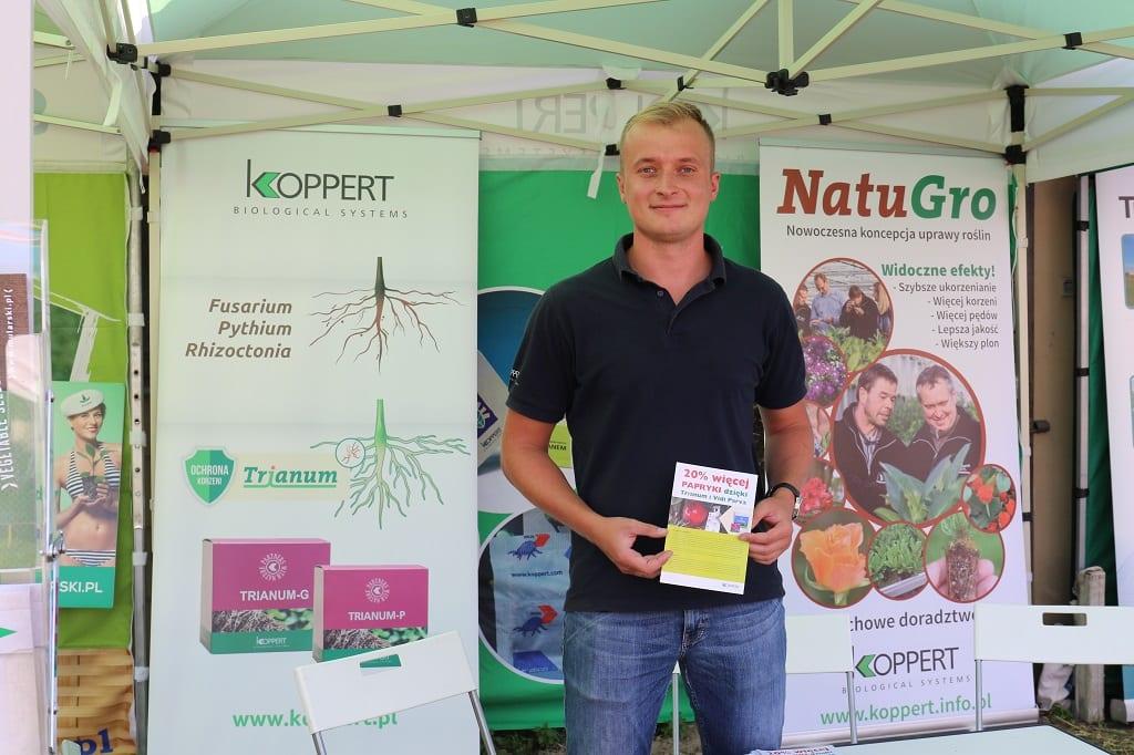 Tomasz Domański z firmy Koppert informował, że w tym roku, tak jak w latach poprzednich w uprawie papryki pojawiają się zamierające rośliny. Często za przyczynę tych objawów przyjmuje się fusarium, ale po zbadaniu korzeni zamierających roślin w jednym z gospodarstw okazało się, że przyczyną była szara pleśń. Po zastosowaniu środków zarejestrowanych do zwalczania tej choroby zaobserwowane poprawę zdrowotności. W gospodarstwie, w którym odbywał się pokaz Tomasz Domański pokazał dwa tradycyjne, dla tego regionu, niskie tunele foliowe, w których papryka była uprawiana przez wiele lat. Właściciel obserwował wzrost uwiądów w papryce. Zdecydowano wówczas o zastosowaniu preparatu Trianum G. Po dwóch latach stosowania tego produktu rośliny wyglądały zadowalająco. Widoczne były tylko pojedyncze zamierające rośliny. Jednak w przypadku intensywnego nagromadzenia się patogenów może być konieczne odkażanie chemiczne. Po jego wykonaniu należy pamiętać o wzbogaceniu gleby. Prelegent zalecał też, aby napowietrzać glebę i spulchniać, a w razie konieczności głęboszować, natomiast starać się jej nie odwracać, ponieważ zabieg ten powoduje przemieszczanie patogenów, które mogą zalegać w głębszych warstwach gleby. Podsumował, że stosowanie środków biologicznych wymaga cierpliwości i konsekwencji w działaniu, ale efekty ich działania mogą być zadowalające.