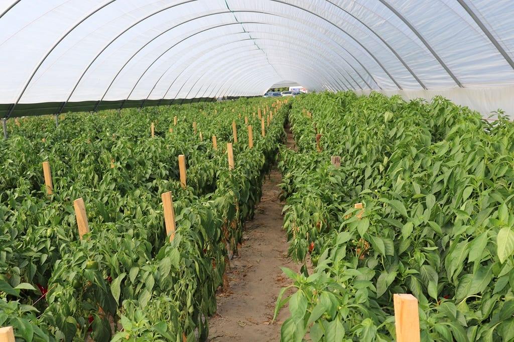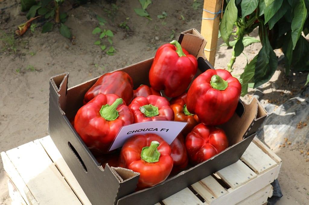 Sławomir Mechacki z firmy HM.Clause informował, że to już czwarta prezentacja odmian w tym gospodarstwie, w którym papryka zajmuje ponad 2 ha. Produkcja oparta jest głównie na odmianach z oferty firmy HM.Clause takich jak np.: Chouca F1, Murano F1, Salomon F1, Muriel F1. Odmiany te można było zobaczyć w uprawie produkcyjnej w zblokowanym tunelu foliowym firmy Haygrove – w każdej z naw posadzona była jedna z tych odmian. Sławomir Mechacki zaznaczył, że ten rok jest bardzo trudny ze względu na wyjątkowo wysokie temperatury panujące z niewielkimi przerwami prawie przez cały sezon. Mimo to odmiany dobrze wiązały owoce. Ponadto papryka jest tu sadzona od lat na tym samym miejscu. Gleba przed uprawą jest odkażana, a ponadto producent stosuje biologiczne środki poprawiające jakość gleby.