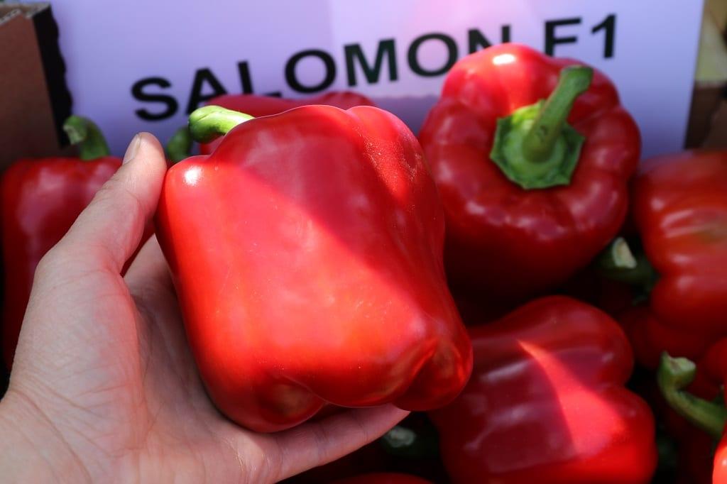 Salomon F1 odmiana wcześnie wybarwiająca się. Murano F1 późniejsza, ale bardzo dobrze wiąże owoce, które wyróżniają się wysoką jakością. Muriel F1 to sztandarowa czerwona odmiana w ofercie firmy HM.Clause. Jest plenna, ma wysokiej jakości owoce, które wyróżniają się trwałością pozbiorczą. Nie ma mikrospękań na owocach. Chouca F1, bardzo dobra odmiana do zbioru na zielone owoce, ponieważ owoce szybko dorastają do wielkości handlowej i mają grube ścianki. Bardzo plenna (do 14–15 owoców na roślinie, o masie pojedynczego owocu 300 g). Odmiana ta może być uprawiana również w polu, z tym, że wymaga podpór. Prelegent podkreślił, że każda odmiana dobrze reaguje na zerwanie pierwszych owoców.