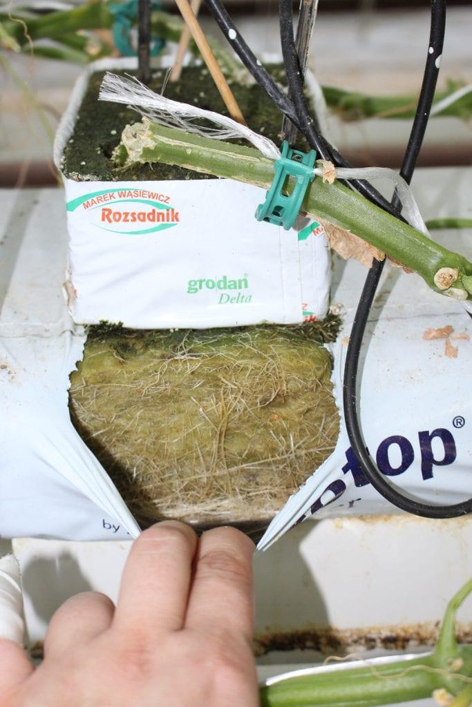 Uprawa prowadzona jest w szklarni państwa Woźniaków w zagęszczeniu 2,5 rośliny/m2 z rozsady dostarczonej przez firmę Rozsadnik – po dwie rośliny w jednej kostce.