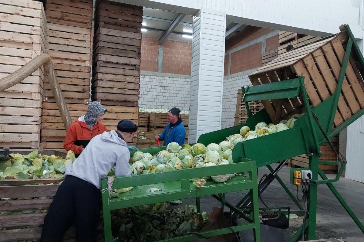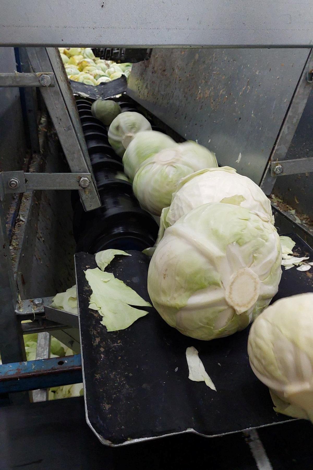 Uprawa kapusty odznacza się dużą pracochłonnością, dlatego uwagę plantatorów przyciągają wszelkie rozwiązania umożliwiające choćby częściową mechanizację niektórych prac. Standardową praktyką jest wykorzystywanie taśm podających wycięte główki na przyczepę. Etap przygotowania kapusty do sprzedaży również udało się usprawnić dzięki niedawnej inwestycji ‒ maszynie do pneumatycznego obierania liści, która stanowi element linii do przygotowania główek do sprzedaży. ‒ Linia wymaga jeszcze doposażenia w taśmę odbierającą obrane liście spod maszyny i transportującą je do skrzyniopalet. Na razie pracę taśmociągu wykonuję ja – przekazywał z uśmiechem W. Płatek.