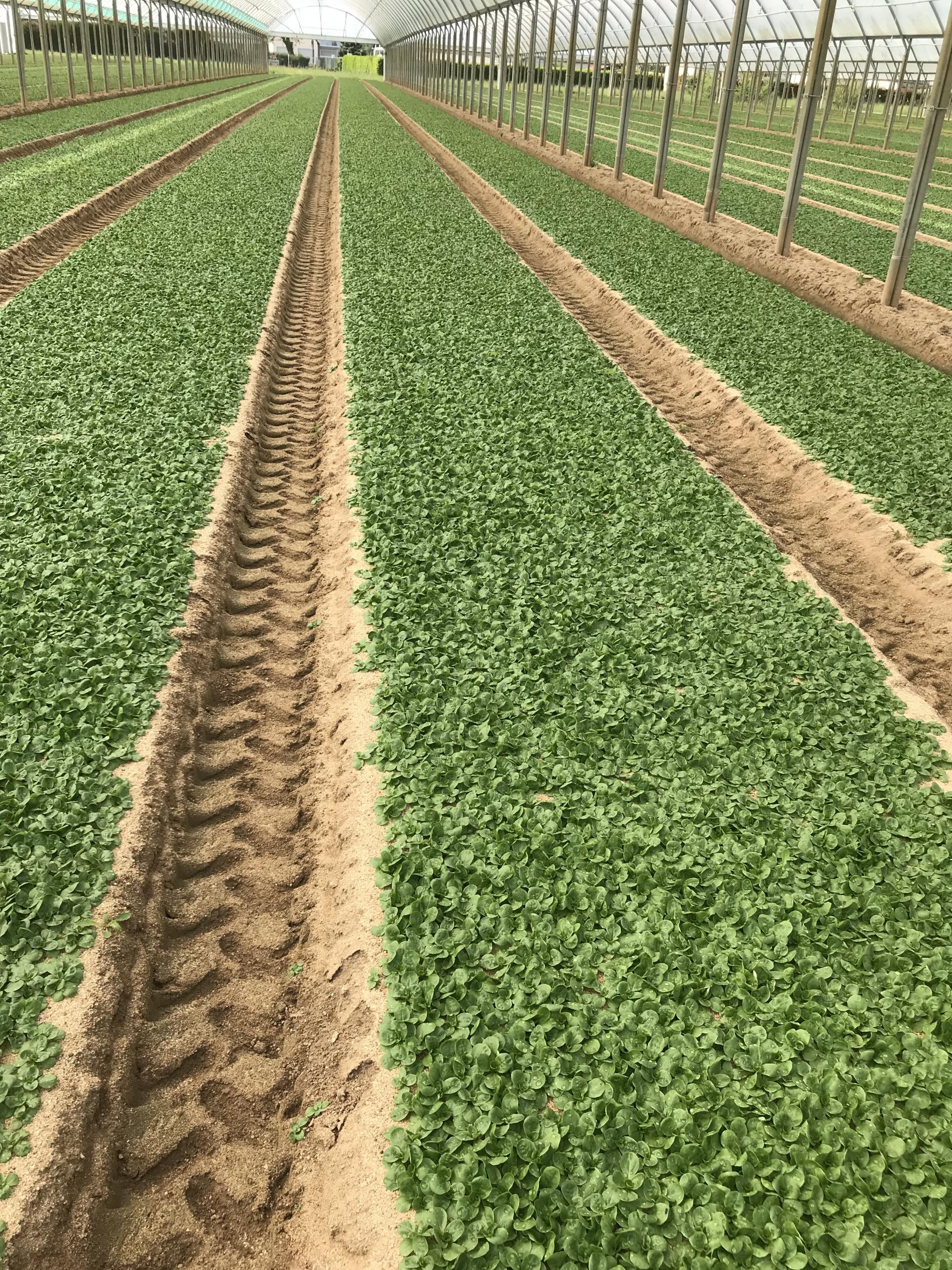 Do letniej uprawy wykorzystuje się wolno rosnące odmiany. W tym okresie roku ich okres wegetacji wynosi ok. 30 dni (Canyon, Vision). Produkt uzyskany z produkcji letniej w wysokich tunelach, jest głównie klasy 4 (najlepszej jakości). Plon uzyskany z letniej uprawy tunelowej wynosi od 800 do 1500 g z m2. 80% letniej uprawy to uprawa w wysokich tunelach, a 20% to uprawa w wysokich obiektach osłoniętych drobną siatką. W celu zabezpieczenia roślin przed poparzeniem słonecznym, obiekty są cieniowane białą farbą. Wysokie tunele wyposażone są w systemy nawodnieniowe oraz wentylatory.