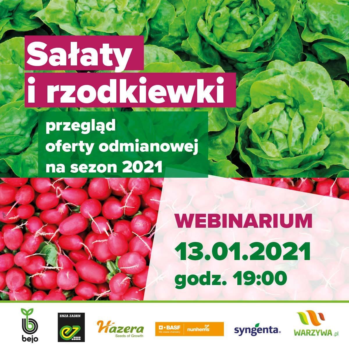 Wspólnie z firmami nasiennymi: Bejo Zaden, Enza Zaden, Hazera, Nunhems, Syngenta zapraszamy na spotkanie online poświęcone nowościom w odmianach popularnych "nowalijek" – sałat i rzodkiewek. Webinarium odbędzie się 13.01.2020 o godzinie 19:00.