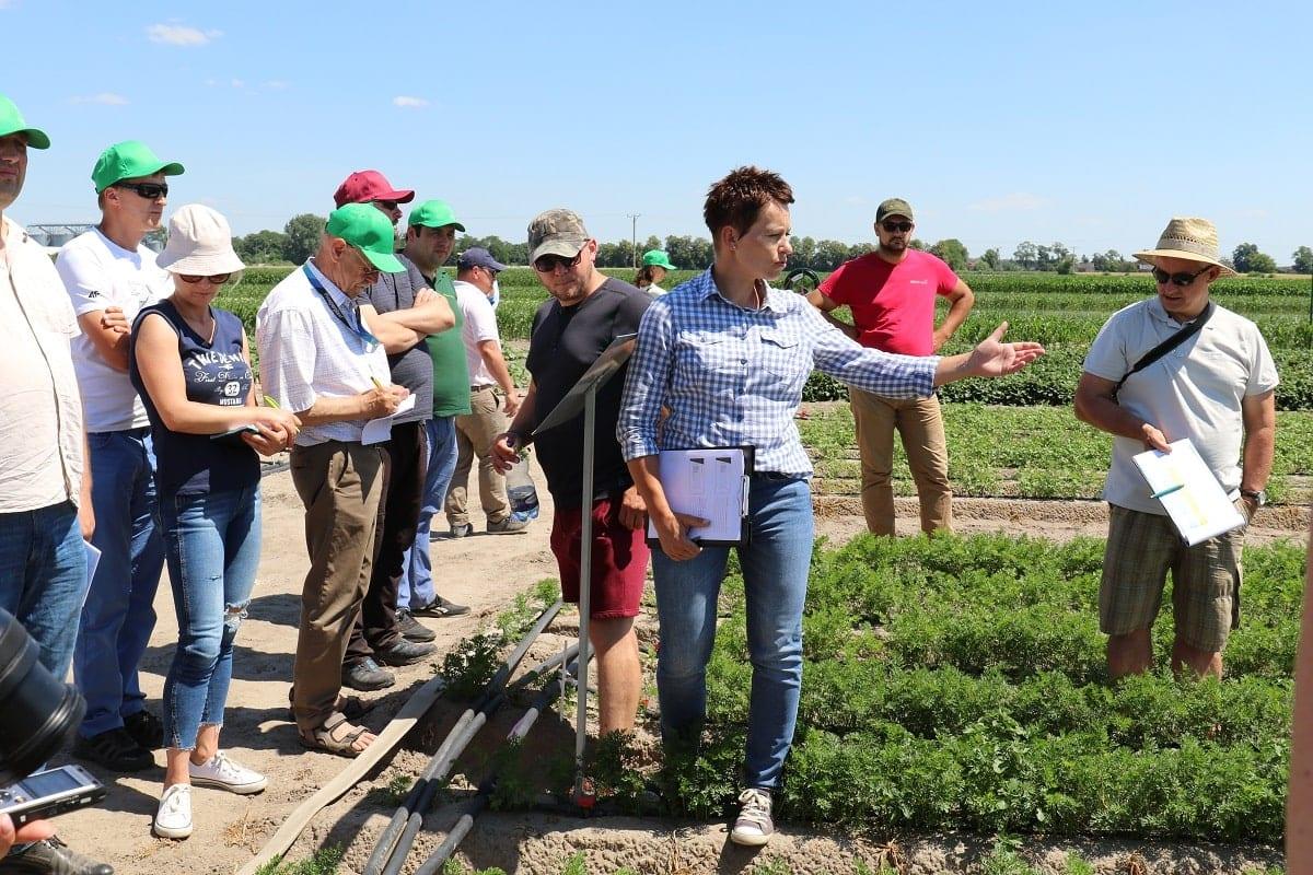 Wyniki doświadczeń warzywniczych przedstawiła Katarzyna Gładka-Kubiak prowadząca te obserwacje w firmie Bayer. Zwróciła ona uwagę m.in. na przebieg pogody, który podobnie jak w ubiegłym roku nie był sprzyjający dla wzrostu roślin. Głównym problemem jest susza. W kwietniu w tym rejonie odnotowano zaledwie 2,5 mm opadu. W maju spadło ok. 30 mm, a suma opadów od 1 do 22 czerwca wyniosła zaledwie 9 mm. Temperatura w kwietniu i czerwcu br. była wyższa niż w roku ubiegłym, a maj był nieco chłodniejszy.