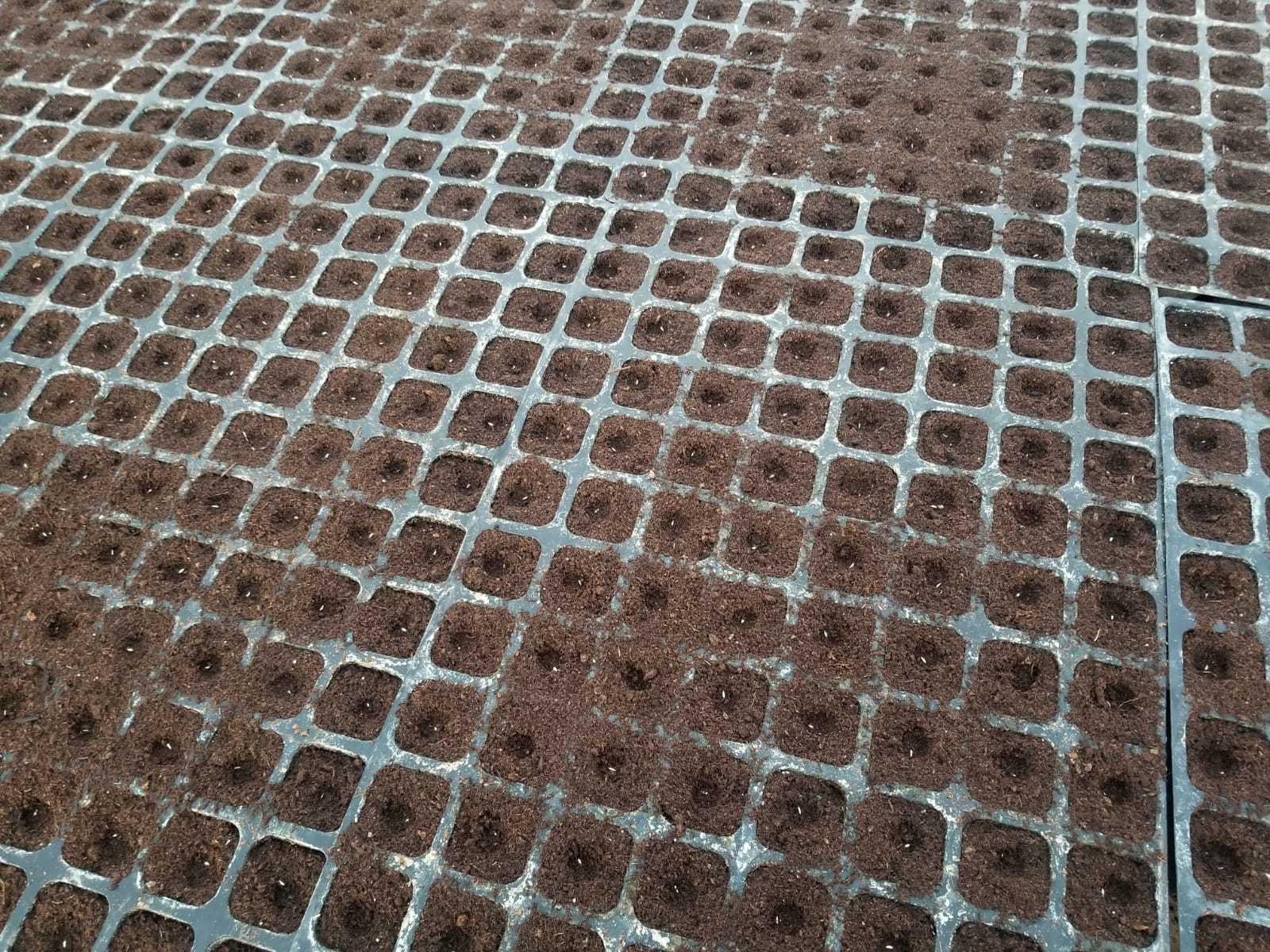 Siew nasion sałaty odbywa się ręcznie do wielodoniczek Vefi zawierających 96 otworów.