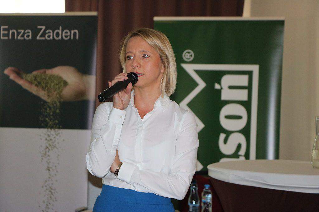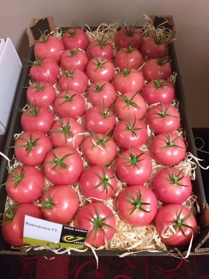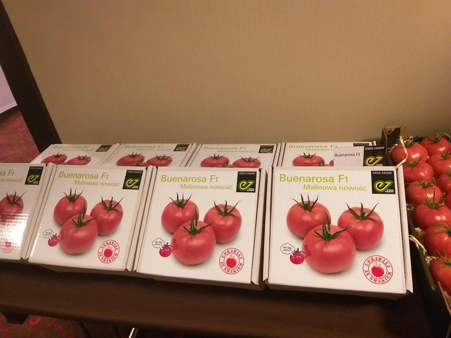 Agnieszka Wiśniewska z firmy Enza Zaden opowiedziała o odmianie Buenarosa F1. Jej głównymi zaletami są: doskonały smak pomidora malinowego, wysoka twardość owoców, wysoki plon handlowy, doskonałe wyrównanie owoców oraz całkowity brak przebarwień słonecznych. Roślina charakteryzuje się silnym wigorem, otwartym pokrojem i wniesionymi liśćmi. Jej dużym atutem są dobre wiązanie owoców, optymalny kształt gron, szybkość tworzenia gron, a także wczesność porównywalna z liderem na rynku. Dodatkowo wzrost pędu głównego przy sznurku zmniejsza pracochłonność przy obróbce roślin. Odmiana ta bardzo dobrze sprawdza się zarówno we wczesnych, grudniowych nasadzeniach, jak również w późniejszych terminach nasadzeń.