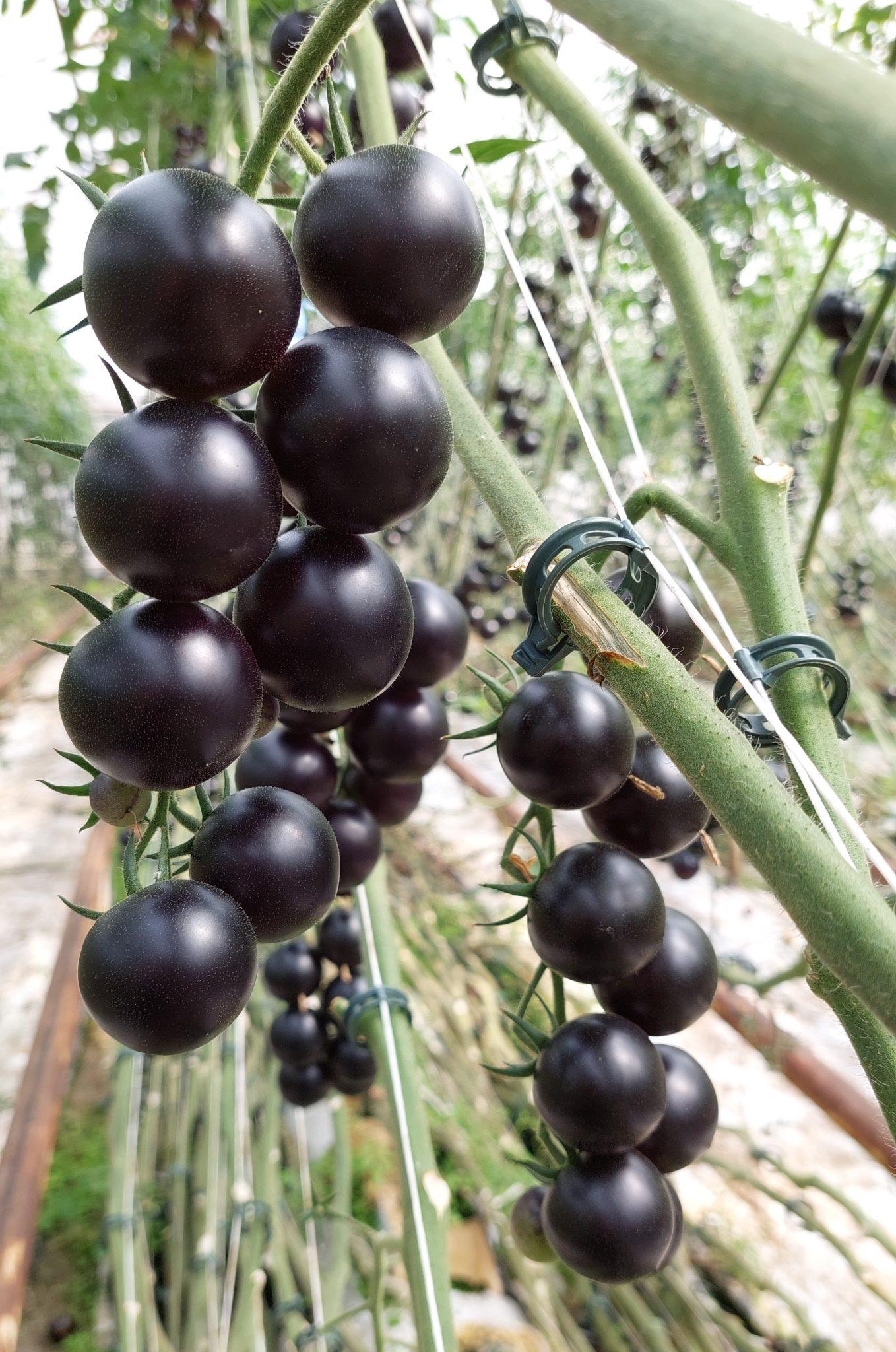 Pomidory w tunelach T. Panfila zwracają uwagę od pierwszego spojrzenia ze względu na wyjątkową różnorodność. Podstawę nasadzeń stanowi Romanella F1 – śliwkokształtna odmiana o czerwonych owocach (100–120 g), jest ona standardem rynkowym w tym segmencie. Z odmian śliwkokształtnych w tunelach plantatora znajduje się również nowa odmiana TobrangE F1 o żółtopomarańczowych owocach, które zależnie od warunków uprawy i pory roku osiągają masę od 100 do 130 g. Rośliny są produktywne o półotwartym pokroju i wykazują średnią odporność na ToBRFV. Zdaniem plantatora jest to bardzo ciekawa propozycja, choć na jego potrzeby owoce mogłyby być nieco większe, co można uzyskać szczepiąc odmianę na podkładce. Dla większego zróżnicowania kolorystycznego posadzono również kilka odmian o niemal czarnej skórce i ciemnoczerwonym miąższu. Jedną z nich jest koktajlowy mieszaniec Tomblack F1 z odpornością na ToBRFV. Jego owoce o masie 30–35 g są kuliste i bardzo atrakcyjne z uwagi na wyjątkowy kolor. Ogrodnik z Bogdanowa zaznaczał, że pewną trudnością w uprawie tej odmiany jest określenie momentu zbioru owoców, które od samego początku mają czarnofioletową barwę i wyglądają na dojrzałe. Wskazówką jest barwa owocu w bezpośrednim sąsiedztwie szypułki, która podczas dojrzewania zmienia się z zielonej na czerwoną. Również w kolorze czarnofioletowym są owoce nowej odmiany Sweetloom F1. Są one spłaszczone, silnie żebrowane o masie 220–240 g. Obydwie odmiany ze względu na kolor skórki odznaczają się wysoką zawartością antocyjanów w owocach, co podnosi ich wartość prozdrowotną. W tunelach w Bogdanowie znaleźć można również liczne odmiany w próbach np. mini San Marzano, żółta miniśliwka.