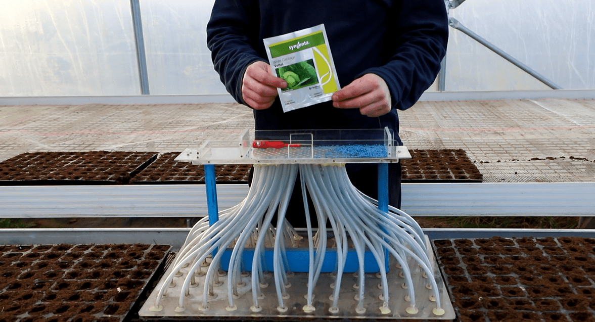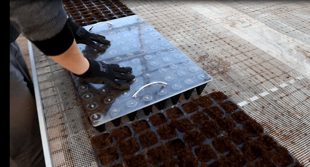 Producenci Dawid i Michał wraz z rodzinami zajmują się uprawą warzyw kapustnych od kilku lat. Rozsada na potrzeby gospodarstwa jest produkowana we własnym zakresie w nowoczesnym obiekcie uprawowym postawionym przez firmę Farmer. Nasiona wczesnych warzyw wysiewane są ręcznym siewnikiem do wielodoniczek wypełnionych substratem torfowym. Tace rozsadowe zawierają 96 otworów.