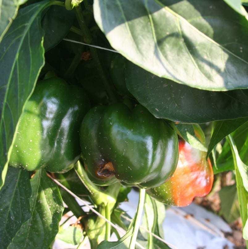 Brązowe, zapadnięte plamy tworzące się na wierzchołkach lub bocznych ścianach papryki to objawy suchej zgnilizny. Do inicjowania tego zaburzenia dochodzi w fazie tworzenia zawiązków gdy zachodzą warunki, w których utrudnione jest pobieranie wapnia przez rośliny tj., gdy gleba jest zbyt sucha lub zbyt wilgotna, bądź dochodzi do dużych wahań wilgotności podłoża. Suchej zgniliźnie sprzyja także wysoka wilgotność powietrza osłabiająca transpirację roślin. Z tego powodu dokarmianie dolistne roślin wapniem należy zacząć już na etapie kwitnienia, pamiętając że pierwiastek ten wnika do tkanek jedynie w miejscach aplikacji.