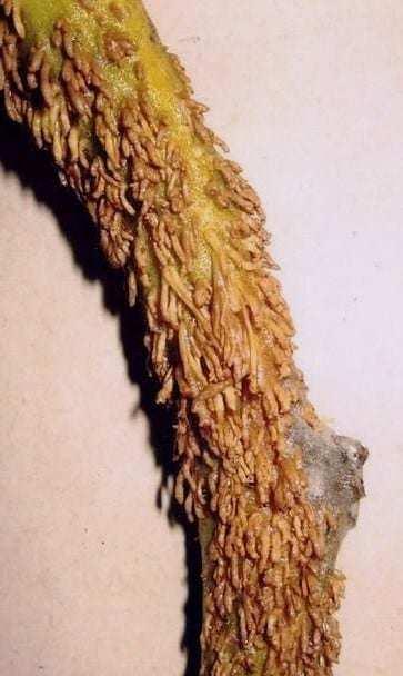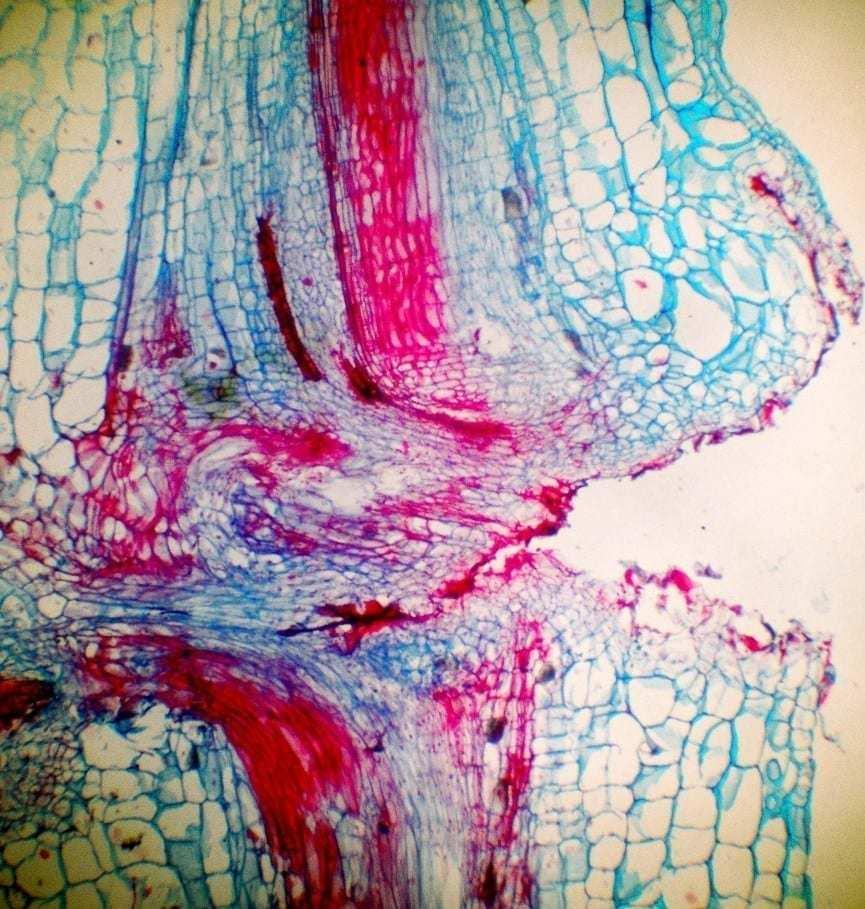 Stwierdzono, że w materiale szczepionym grubość warstwy tkanki ksylemu była dwa–trzy razy większa, niż u roślin nieszczepionych. Pojedyncze wiązki naczyń roślin