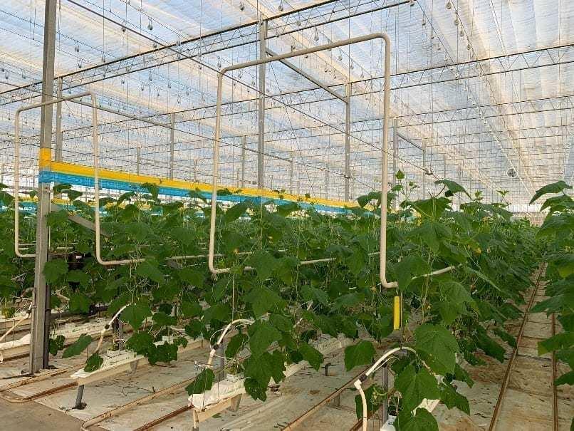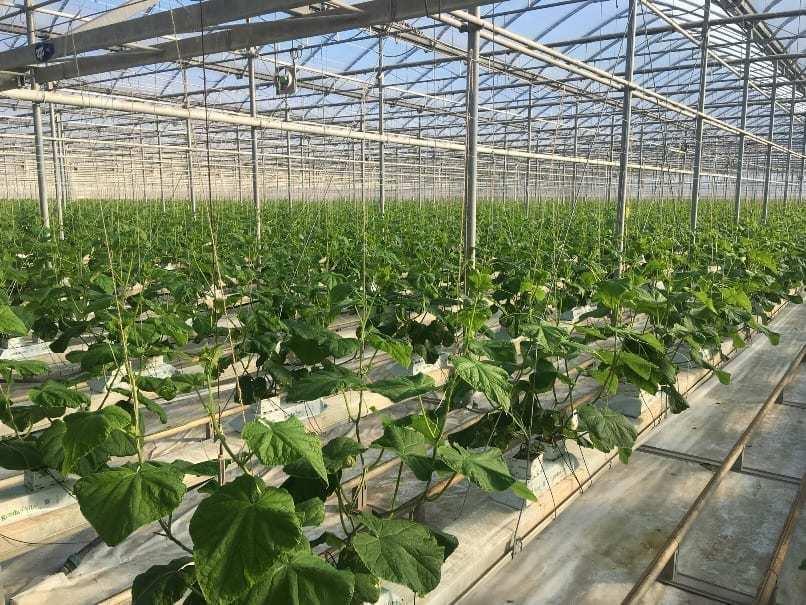Uprawa ogórków też wygląda inaczej niż w Polsce. Ze względu na to, że typ Long Dutch tj. długi szklarniowy wytwarza zwykle duże liście nawet o 50% większe niż ogórki typu BAP Midi – ogórki sałatkowe (np. Pacto, Quintus) w systemie uprawy „na parasol” stosuje się zagęszczenie 1,6 rośliny/m2, natomiast w systemie „wysokiego drutu”, ze względu na zastosowanie roślin o innej konstrukcji, zagęszczenie może wynosić nawet 2,7 rośliny na m2. W systemie „na parasol” bez doświetlania uprawa rozpoczyna się podobnie jak w Polsce już od połowy grudnia, ale najczęściej wybieranym terminem jest początek stycznia, natomiast uprawa w systemie „wysokiego drutu” z doświetleniem rozpoczyna się zwykle w połowie listopada. Rozsada produkowana jest przez jedną z trzech firm rozsadowych, rzadko gospodarstwa produkują ją same.