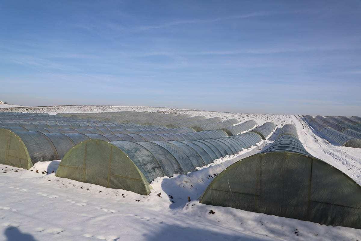 Sadzenie roślin przypada zwykle w ostatnim tygodniu lutego. Po posadzeniu rośliny w tunelach są dodatkowo okrywane włókniną, zabezpieczającą rośliny przed chłodem.