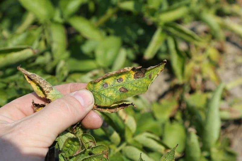Objawy Alternariozy ziemniaka na górnej i dolnej stronie liści – zdjęcia z Podlasia – 8 lipiec 2018 r.