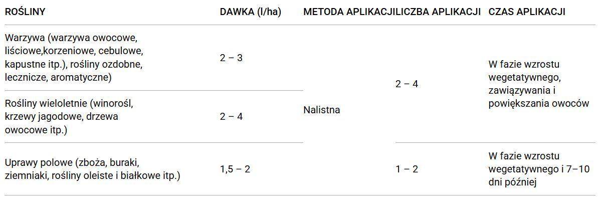 Zaleca się aplikację o zmierzchu lub w okresach mniejszego nasłonecznienia, przy temperaturze od 10 do 30°C.