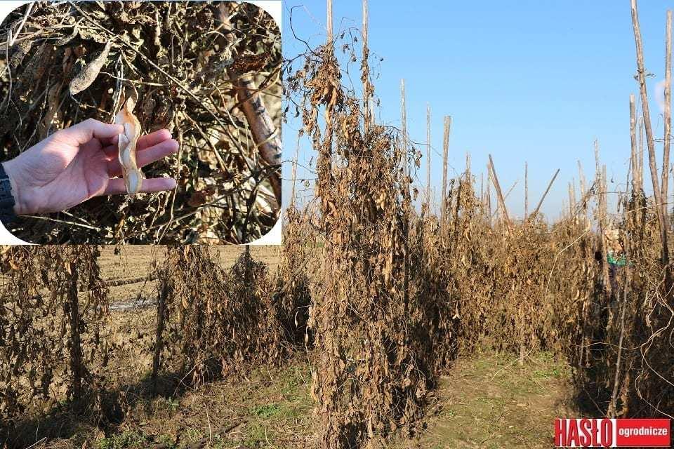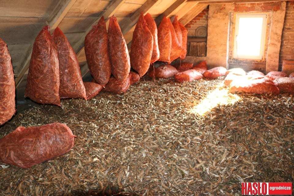 Następnie strąki zrywane są ręcznie i suszone na strychach. Plon handlowy nasion wynosi ok. 1,5 t/ha.