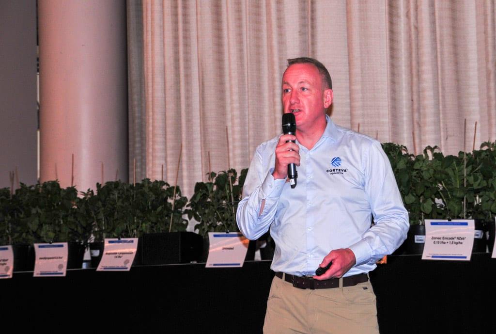 Ponad 200 gości z całej Europy miało okazję wysłuchać prezentacji dotyczących chorób ziemniaka i rozwiązań, jakie proponuje Corteva Agriscience. W roli głównej „wystąpił” nowy, zarejestrowany także w Polsce jako Zorvec Enicade® fungicyd przeznaczony do zwalczania zarazy ziemniaka – Zorvec TM o którym już pisaliśmy na naszych łamach (tutaj)