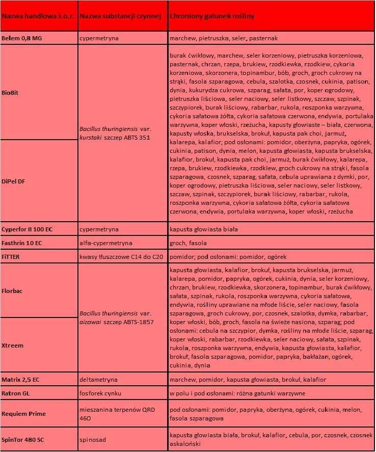 Znaczne zmiany dotyczą także tabeli, w której znajdują się informacje odnośnie do żywych organizmów wykorzystywanych do ochrony przed chorobami i szkodnikami. Podajemy nie tylko informacje o nowych środkach, czy zmiany lub uzupełnienia zaleceń odnośnie dawkowania i terminów introdukcji. Wycofanie z użycia syntetycznych środków, które działały destrukcyjnie na szkodniki glebowe, pozostawiły pewną pustkę, którą czymś zapełnić należy, aby chociaż trochę pomóc ogrodnikom. W tabeli znajdują się więc m.in. dane właśnie o mikroorganizmach mogących się przydać w ograniczaniu populacji pędraków, drutowców, larw opuchlaków, gąsienic rolnic, larw turkucia podjadka.