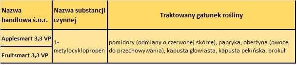 ● 1-metylocyklopropenu w postaci środka o handlowej nazwie SmartFresh 03VP.