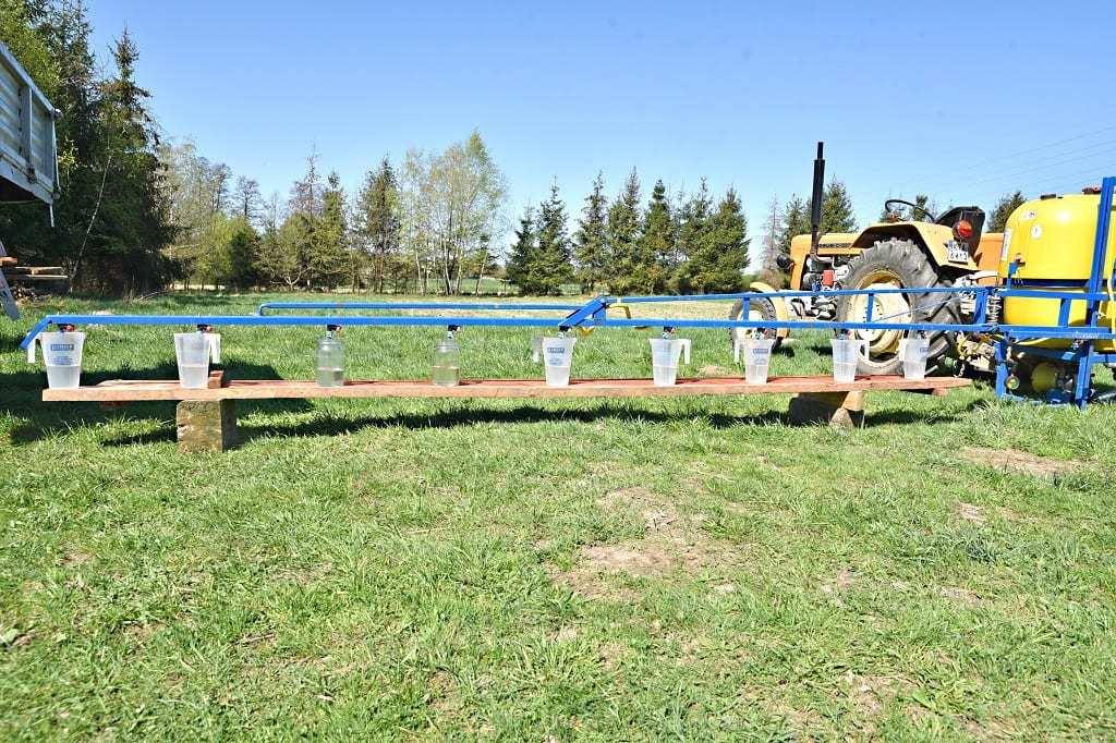 Sprawdzenie jakości dystrybucji cieczy w opryskiwaczu polowym.