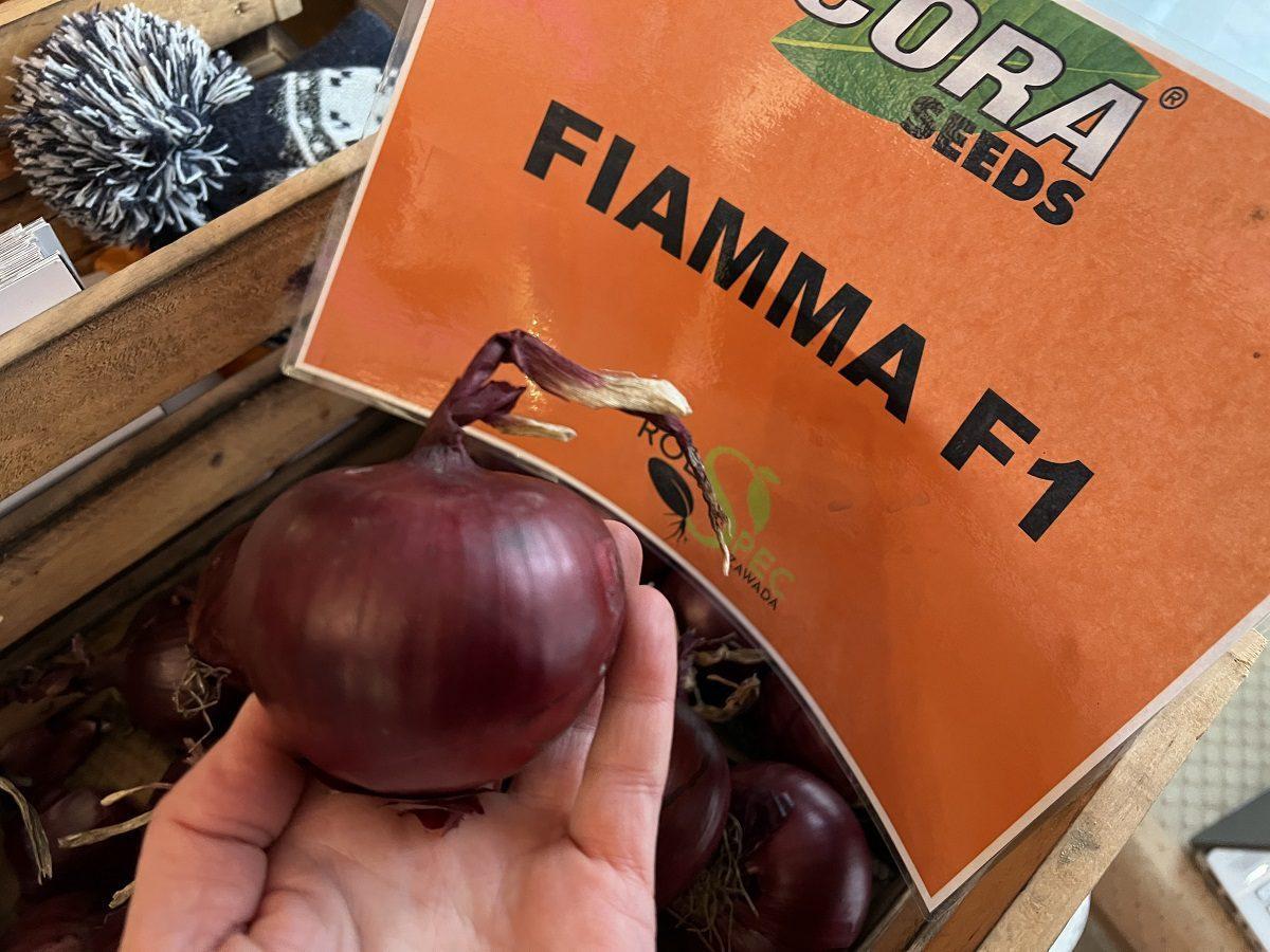 Prelegent polecał również odmianę Khalifer F1 w typie włoskim, tworzącą twarde cebule, o podwyższonej tolerancji na Stemphylium, a także odmianę Fundador F1 w typie hiszpańskim. Z cebul o czerwonej łusce z oferty Cora Seeds M. Wieczyński polecał Fiamma F1 do średnio długiego przechowywania (styczeń/luty) oraz odmianę Lisa F1, o ok. 10 dni wcześniejsza niż Fiamma.