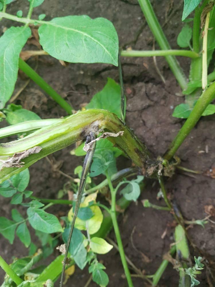 W tym roku na niektórych plantacjach problemem są infekcje Pectobacterium. Bardzo często z powodu rozprzestrzeniania bakterii przez wiatr, wodę czy owady w nowe miejsca dochodzi do nowych infekcji w środkowych częściach łodygi lub w kątach liści. Choroba jest dużym problemem, ponieważ nawet przy wczesnym usunięciu porażonych roślin mogą pojawiać się jej nowe ogniska.