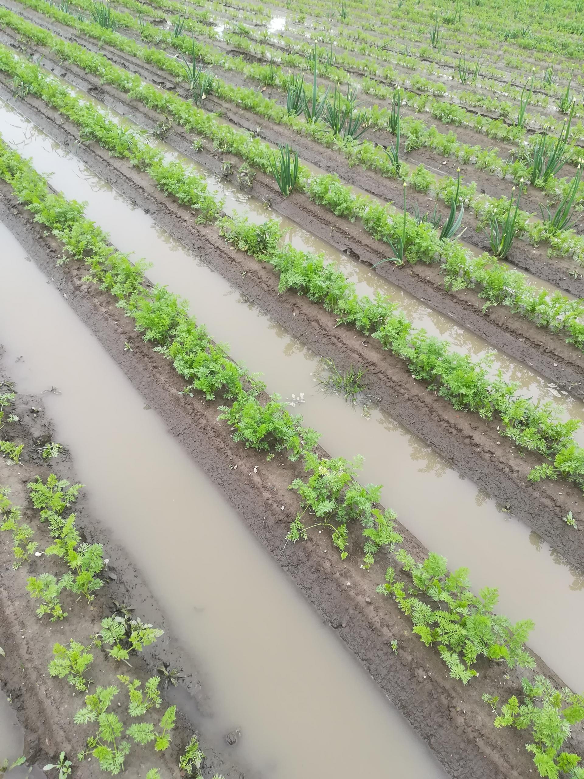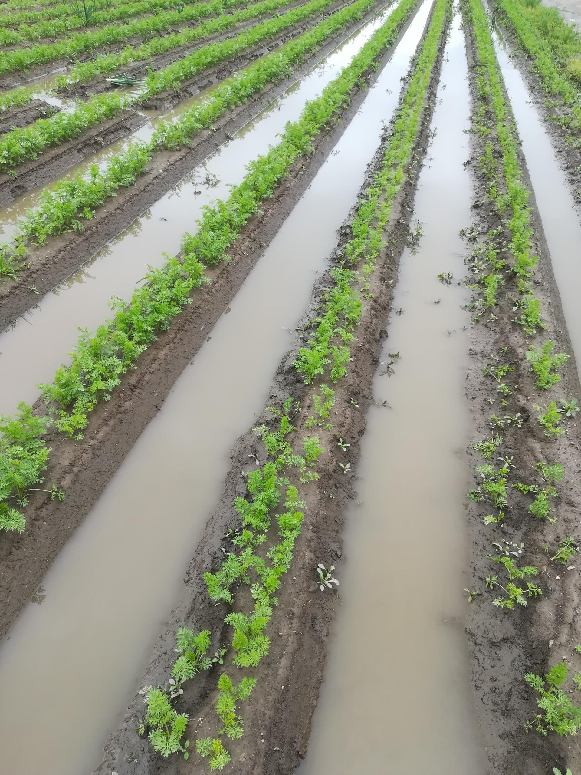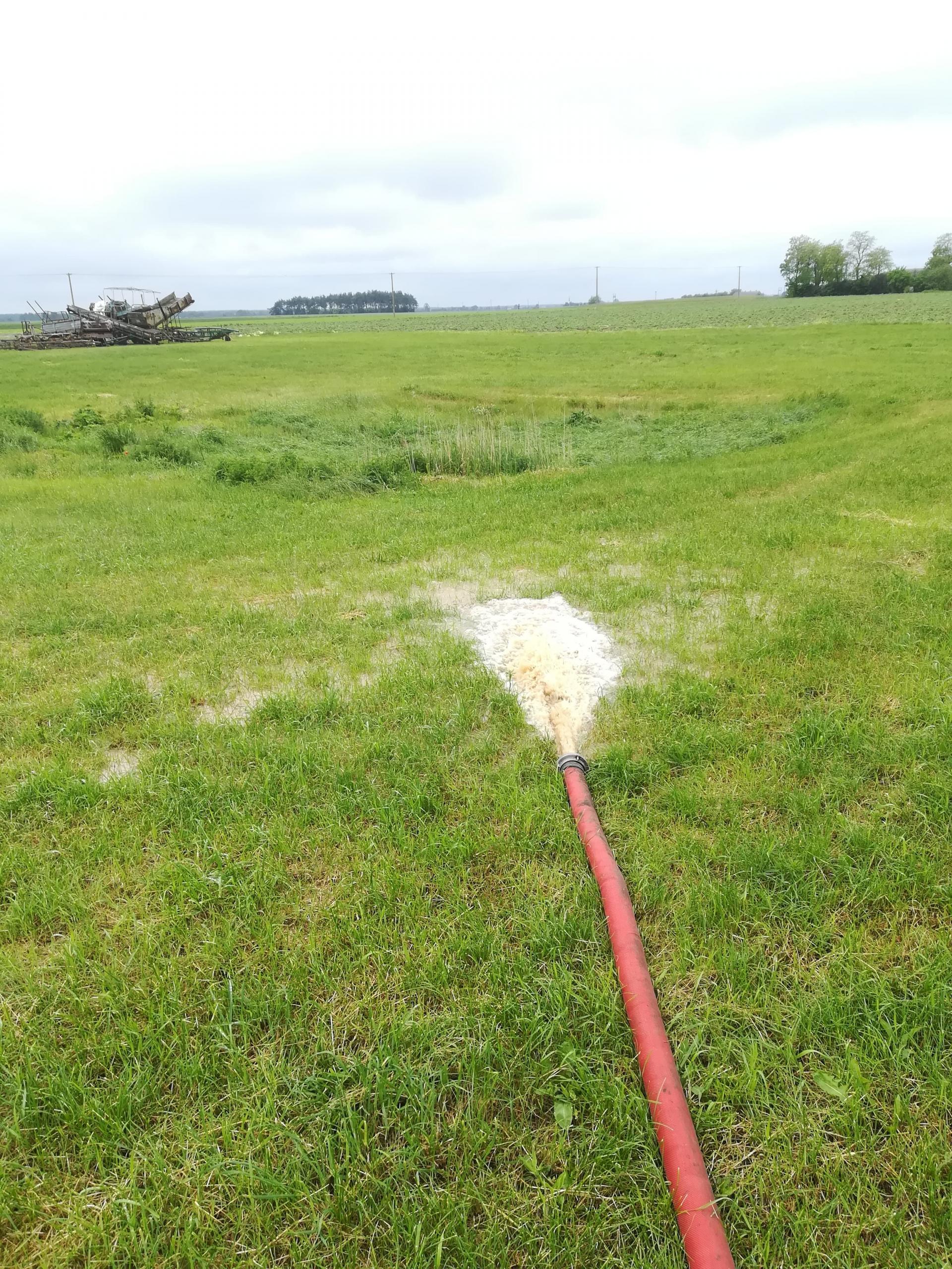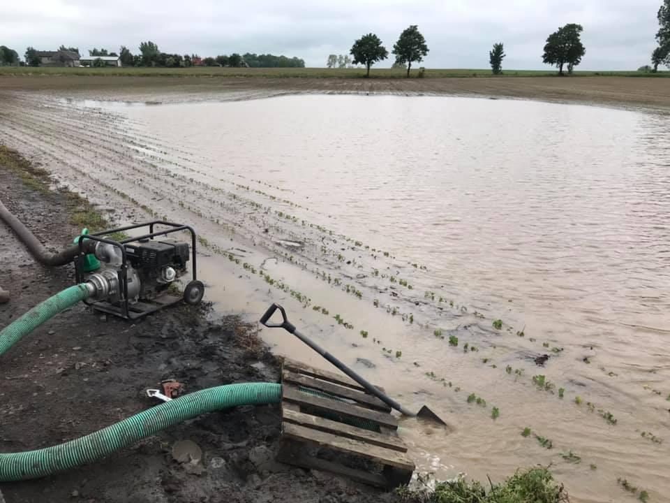 W gminie Aleksandrów Kujawski nie padało od dawna, dlatego deszcz nie wsiąkał w glebę, tylko spływał strumieniami i gromadził się w zagłębieniach terenu, efektem są podtopione pola. - Obecnie borykamy się ze zjawiskiem suszy, więc postanowiliśmy pompować wodę z zalanego pola do pustego stawu by tę wodę zmagazynować, a nie upuścić do pobliskiego rowu - pisze Daniel, któremu zalało uprawy marchwi i cebuli.
