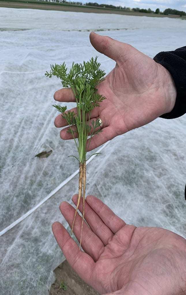 Chłodna wiosna, a potem brak opadów i upały spowodowały, że korzenie wolno dorastały. Na początku lipca marchew była prawie gotowa do zbioru. Zadowalająca była zdrowotność naci.