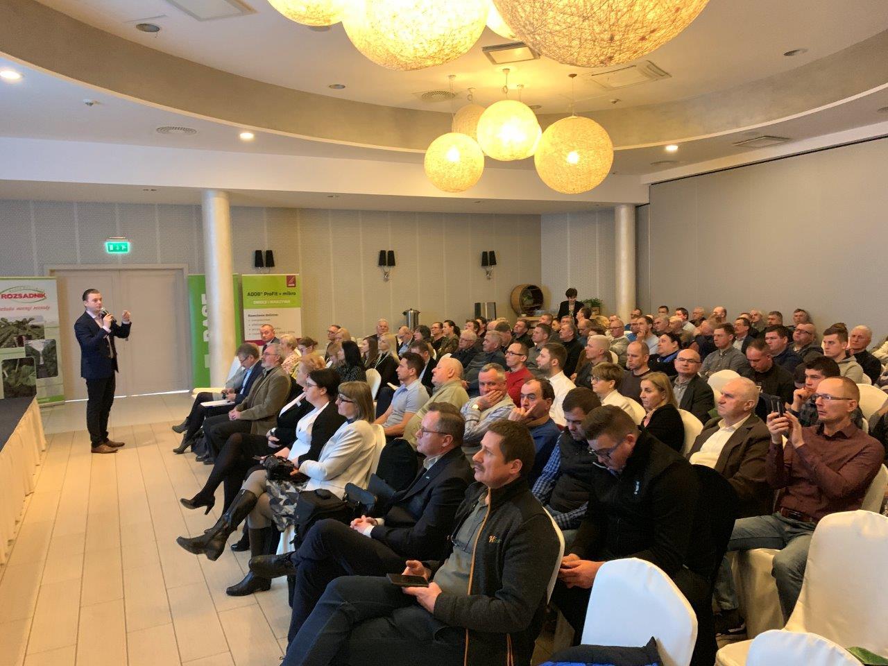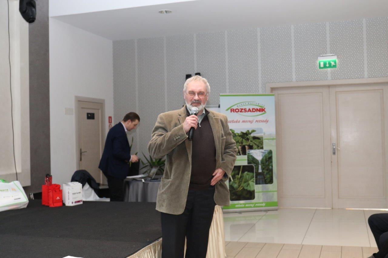 Włodzimierz Prus z firmy ADOB zwrócił uwagę na ważne kwestie związane z racjonalnym nawożeniem. Radził kontrolować odczyn gleby, a analizę gleby wykonywać metodą ogrodniczą. Wspomniał, że podstawą jest nawożenie przedwegetacyjne, a dolistne dokarmianie stanowi jedynie uzupełnienie składników. Dolistne dokarmianie roślin sprawdza się też w warunkach np. upałów, gdy występują problemy z pobieraniem składników pokarmowych z gleby. Spośród produktów z oferty firmy ADOB specjalista polecał m.in. Chelat wapnia Ca IDHA, a także nowość – saletra wapniową Max – w płatkach, w której użyto nowy czynnik chelatujący. Prelegent zachęcał też do stosowania kondycjonera wody ADOB RH, który zwiększa efektywność zabiegów chemicznych. Polecał też serię nawozów dolistnych Adob ProFit.