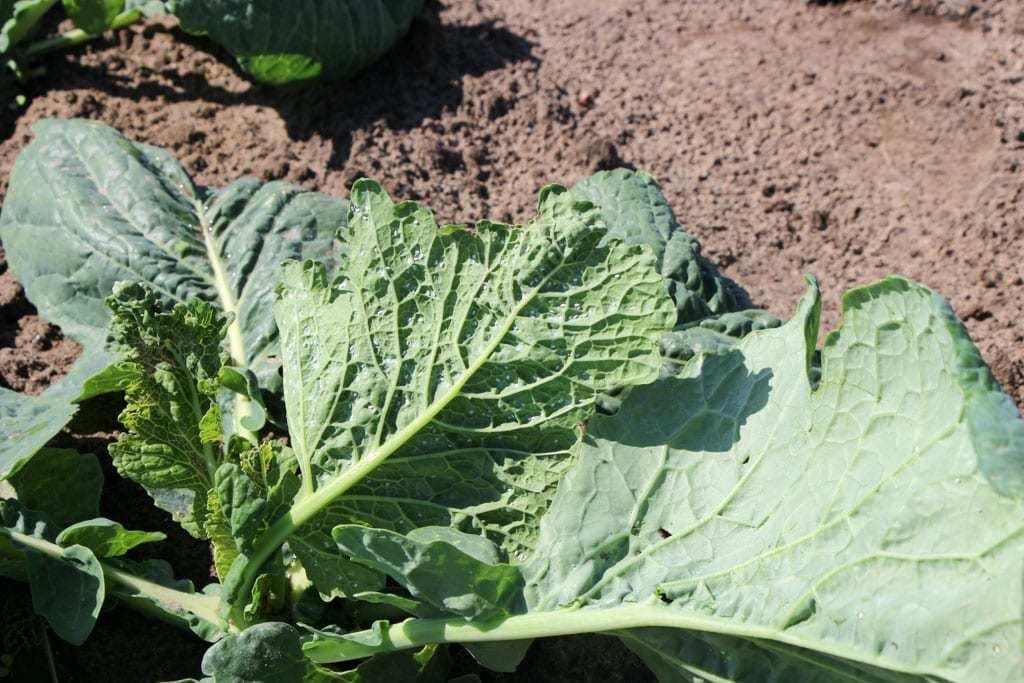 K. Gładka-Kubiak informowała również o swoich tegorocznych obserwacjach odnośnie fitosanitarnego stanu roślin i przyspieszonego, wobec wcześniejszych sezonów, wystąpienia wielu agrofagów. W centralnej Polsce obserwowała ona pojawienie się śmietki ćwiklanki już 15 maja. Mączlik warzywny i tantniś krzyżowiaczek wystąpiły właściwie w tym samym czasie – już od 1 czerwca. Obecnie populacje tych szkodników są bardzo liczne i walka z nimi jest coraz bardziej skomplikowana. Osobniki mączlika warzywnego wybierają do bytowania pokarbowane powierzchnie roślin o wiele częściej niż spłaszczone. Przykładowo na tej samej roślinie kapusty włoskiej na starszych, dolnych liściach rozety osobników mączlika jest stosunkowo niewiele w porównaniu z młodymi liśćmi silnie pokarbowanymi, zaczynającymi tworzyć główkę (fot. 5). Młode liście są oczywiście znacznie atrakcyjniejsze pokarmowo i mają cieńszą skórkę niż starsze. Poza tym pokarbowana powierzchnia stanowi lepsze (niż płaska) miejsce schronienia i kryjówkę przed cieczą roboczą środków ochrony roślin.