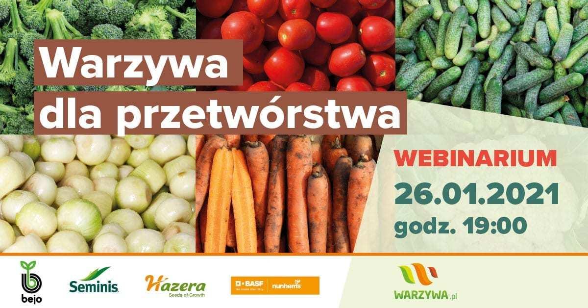 Wspólnie z czołowymi firmami nasiennymi: Seminis, Nunhems, Hazera, Bejo Zaden zapraszamy na spotkanie online poświęcone odmianom warzyw do przetwórstwa. Webinarium odbędzie się 26.01.2021 o godzinie 19:00.