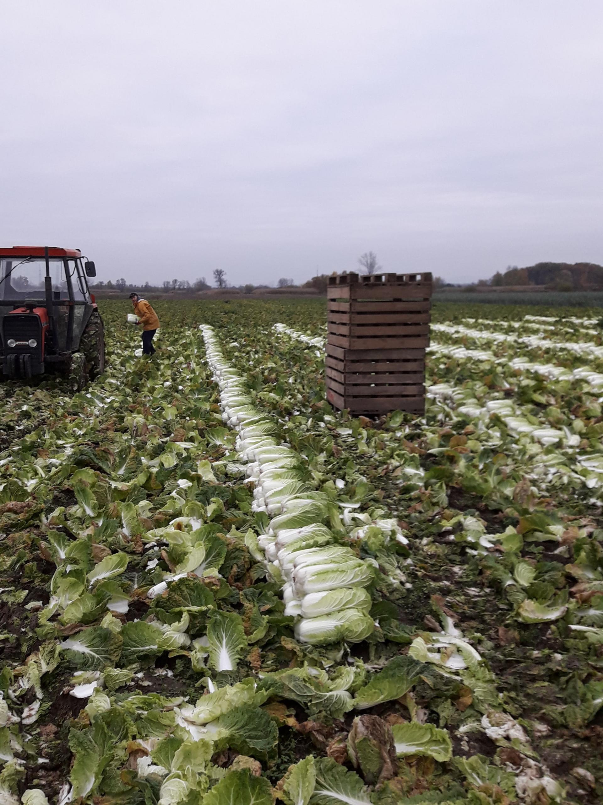 Sadzenie rozsady zakupionej w specjalistycznym gospodarstwie rozsadowym rozpoczęło się 12 sierpnia i było prowadzone przez dwa dni. Warunki pogodowe były wówczas bardzo trudne dla młodych roślin ponieważ temperatura powietrza sięgała 32-33°C. Ogrodnik zdecydował się na odmianę Bilko F1, która jego zdaniem najlepiej sprawdza się w warunkach klimatyczno-glebowych gospodarstwa. Zastosowano rozstawę 58 x 30 cm. W trakcie wegetacji plantacja nie była nawadniana. Zbiory prowadzone są do skrzyniopalet, w których towar trafia do hali przechowalniczej.