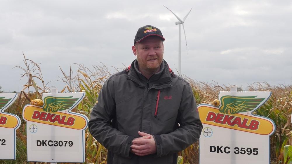 Podczas spotkania uczestnicy mieli okazję udać się na pole, na którym zaprezentowane zostały odmiany kukurydzy DEKALB. O odmianach opowiadał ekspert Marcin Liszewski.
