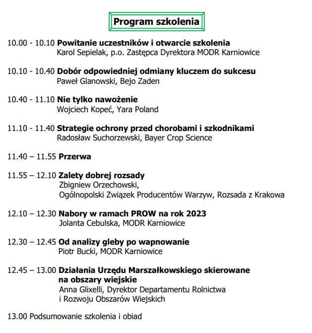 Już 15.12.2022 roku, o godzinie 10:00 w Gminnym Ośrodku Kultury w Koniuszy (32-104 Koniusza;5), odbędzie się spotkanie organizowane przez Małopolski Ośrodek Doradztwa Rolniczego z siedzibą w Karniowicach Ogólnopolski Związek Producentów Warzyw wraz ze współorganizatorami: