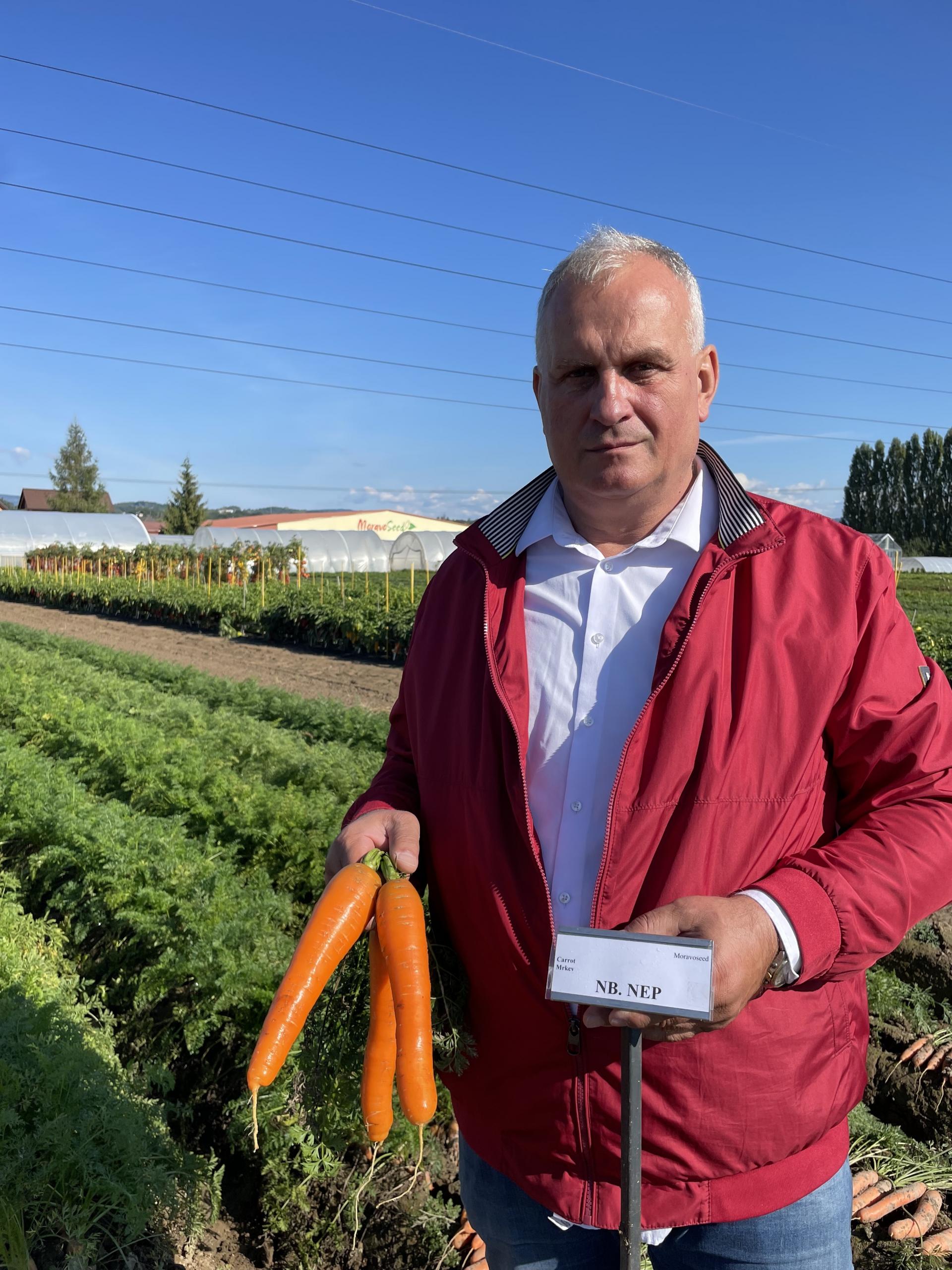 – Z odmian w typie nantejskim warto zwrócić uwagę na Knotę – mówił Dariusz Kacprzak. – Jest średnio wczesna, o wegetacji 95–100 dni. Główka korzenia nie ma tendencji do zielenienia, nać jest silna. Polecamy ją do sprzedaży w pęczkach. Nasiona są dostępne w postaci kalibrowanej.