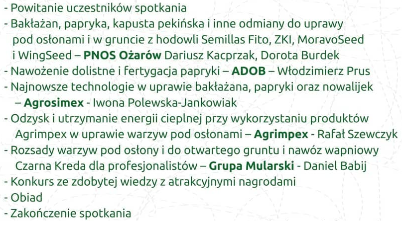 Serdecznie zapraszamy na spotkanie organizowane przez firmę PNOS Ożarów Mazowiecki. Tematem spotkania będą papryki, pomidory i nowalijki. Jakie wyzwania czekają na producentów warzyw pod osłonami?