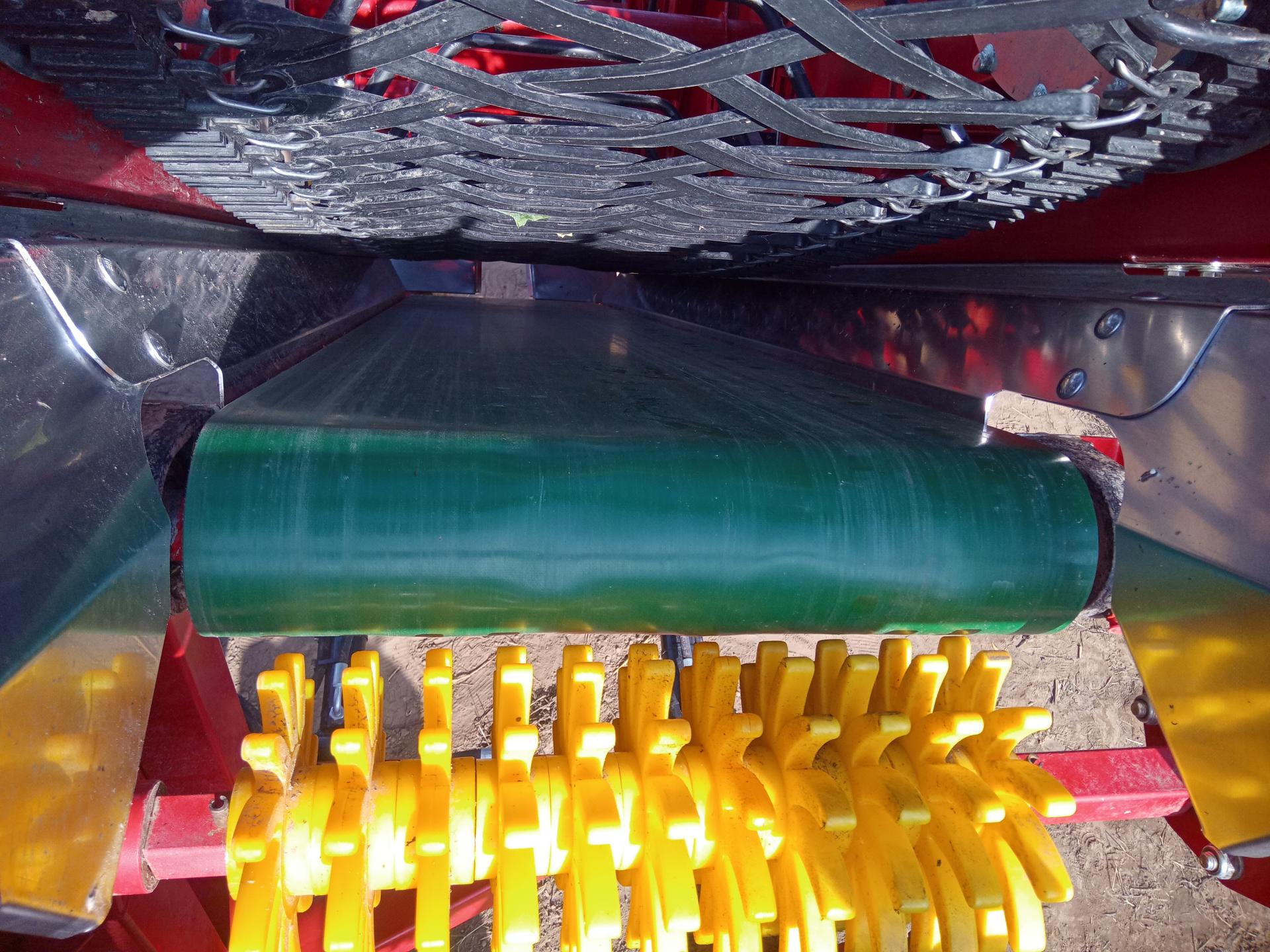 Pasy są wykonane z PVC i mają chropowatą fakturę. Roślina ściśnięta przez pasy jest wyrywana z korzeniami, a po krótkiej podróży w górę jej "noga" trafia pomiędzy dwie tarcze tnące, za którymi zaczyna się pas podtrzymujący, tak samo chropowaty, jak boczne.