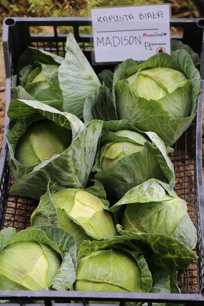 Kapusta głowiasta. Odmiana Madison jest bardzo plenna, główki zwarte, lekko spłaszczone o masie do 5 kg. Nadaje się do przetwórstwa na kwaszenie i przechowywania przez około 3 miesięcy.