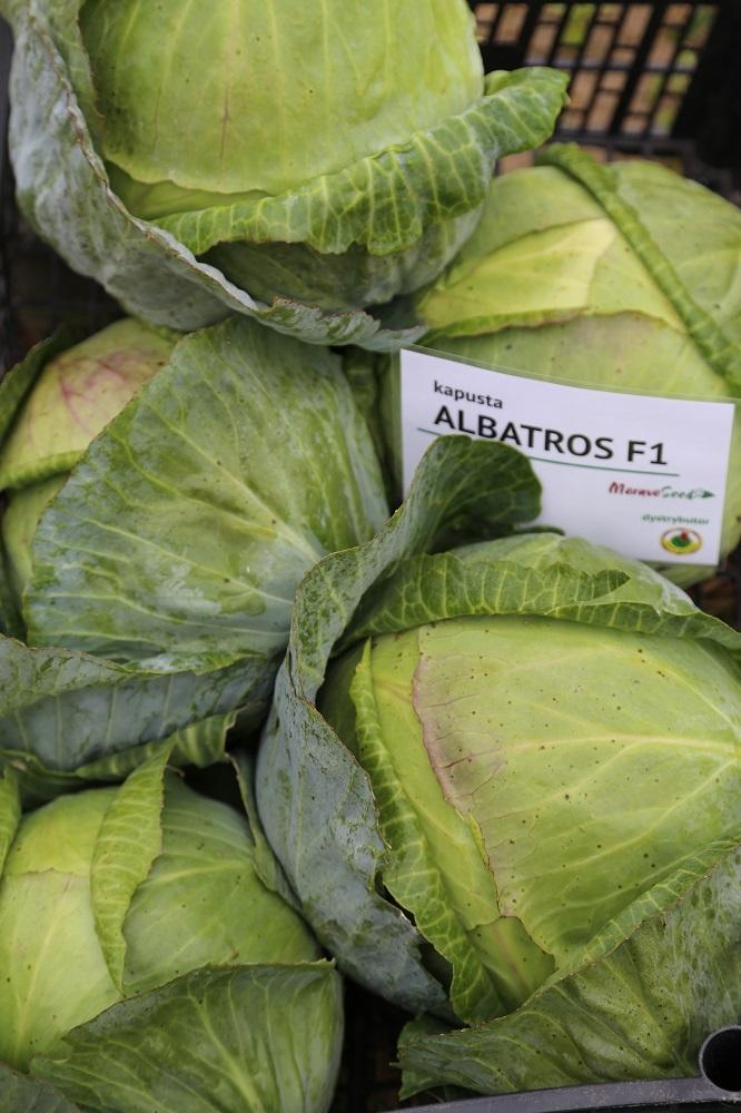 Albatros zawiązuje mniejsze główki, bardzo twarde, odporne na pękanie. Polecane do długiego przechowywania w warunkach kontrolowanych. Liście z silnym nalotem woskowym.