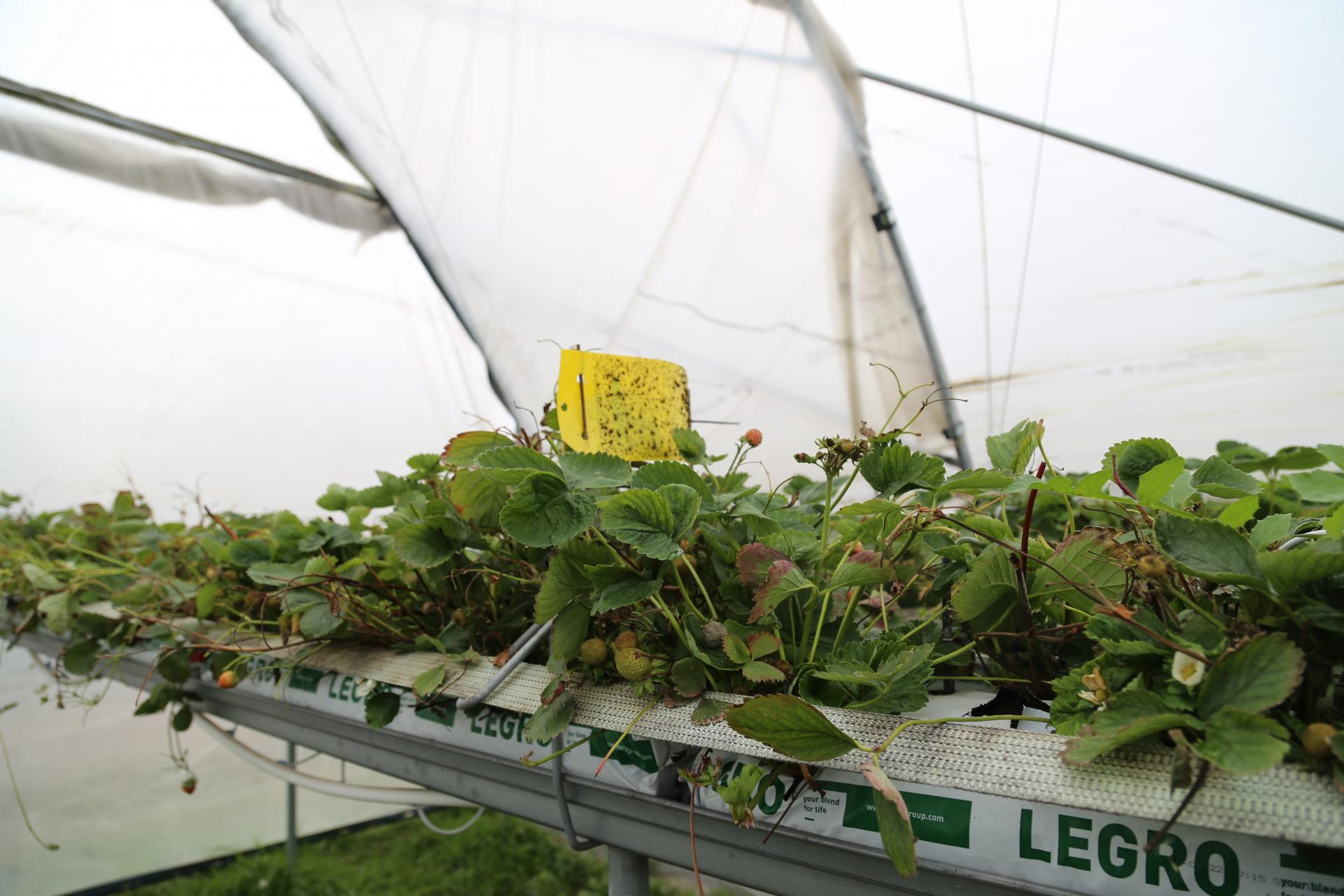 Truskawki rosną w matach uprawowych wypełnionych włóknem kokosowym (Legro i Botanicoir) z 6–8 otworami w zależności od odmiany. Na każdy metr bieżący przypada 5 kroplowników.
