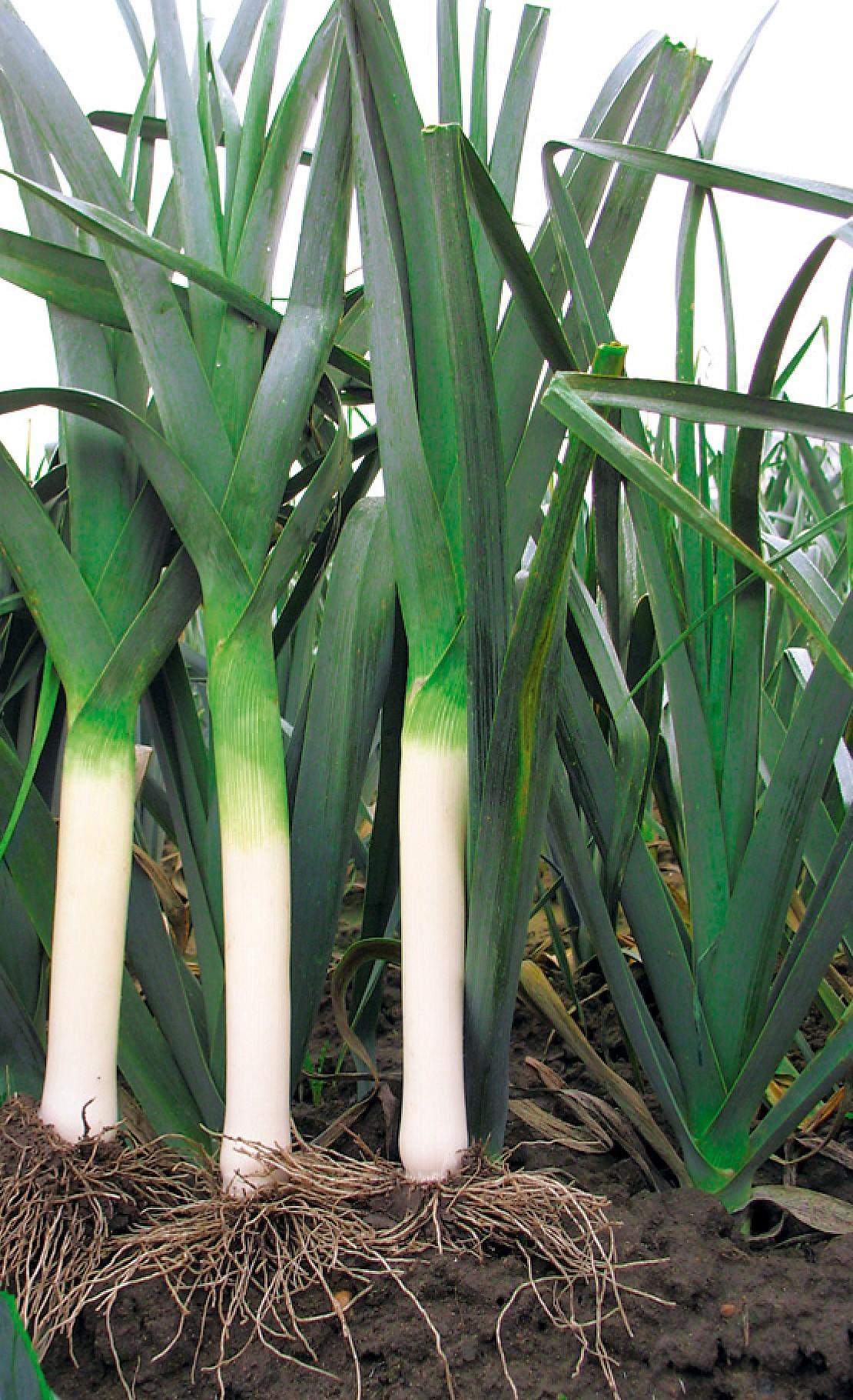 Vigora – nowa odmiana mieszańcowa, średnio wczesna, do sadzenia po 10 maja. Do zbioru od września do końca jesieni i przeznaczona na rynek warzyw świeżych. Tworzy bardzo wyrównane rośliny o wzniosłym pokroju. Liście są ciemnozielone, z mocnym nalotem woskowym. Nie jest atakowana przez wciornastki. Część wybielona jest długa (> 30 cm), bez zgrubienia cebulowego. Bardzo łatwo się obiera.