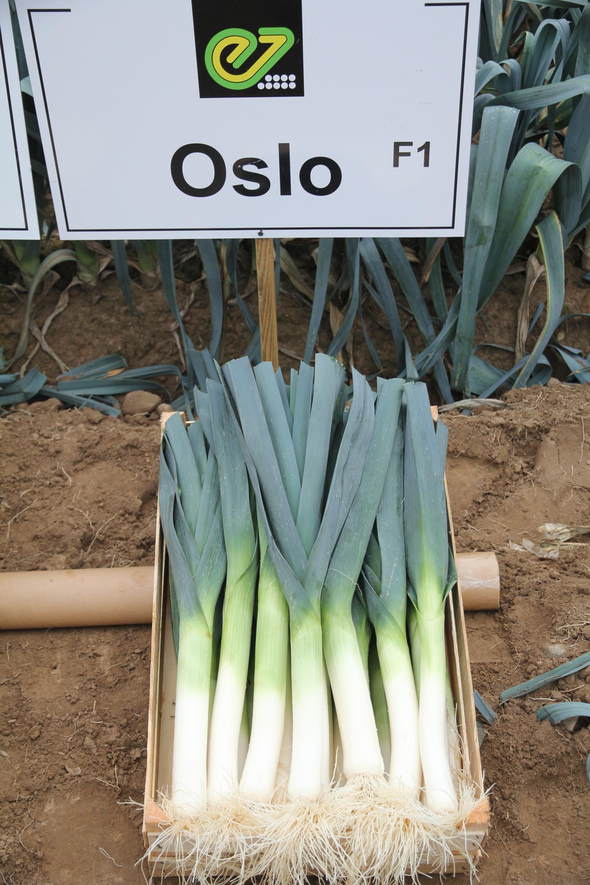 Oslo – odmiana mieszańcowa do przezimowania lub zbioru jesienią, charakteryzuje się wyrównaniem, co pozwala na jej sprzedaż także na sztuki. Nie wymaga dużych nakładów pracy podczas przygotowania do sprzedaży. Ma bardzo intensywnie woskowane liście. Odmiana bardzo odporna na wybijanie w pęd kwiatostanowy, a także szybko regenerująca się po zimie.
