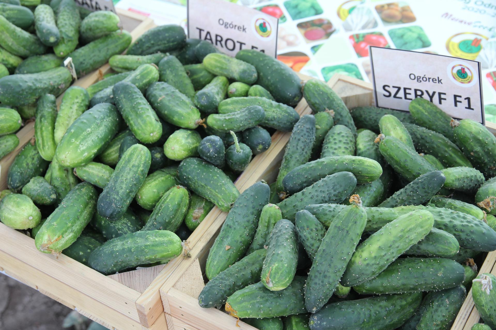 - Szeryf – przeznaczony do konserwowania. Rośliny o silnym wigorze i dominujących żeńskich kwiatach. Owoce cylindryczne, ciemnozielone, z rzadkimi brodawkami. Odmiana bardzo plenna, z wysokim udziałem plonu wczesnego. Ma wysoką tolerancję na mączniaka rzekomego.