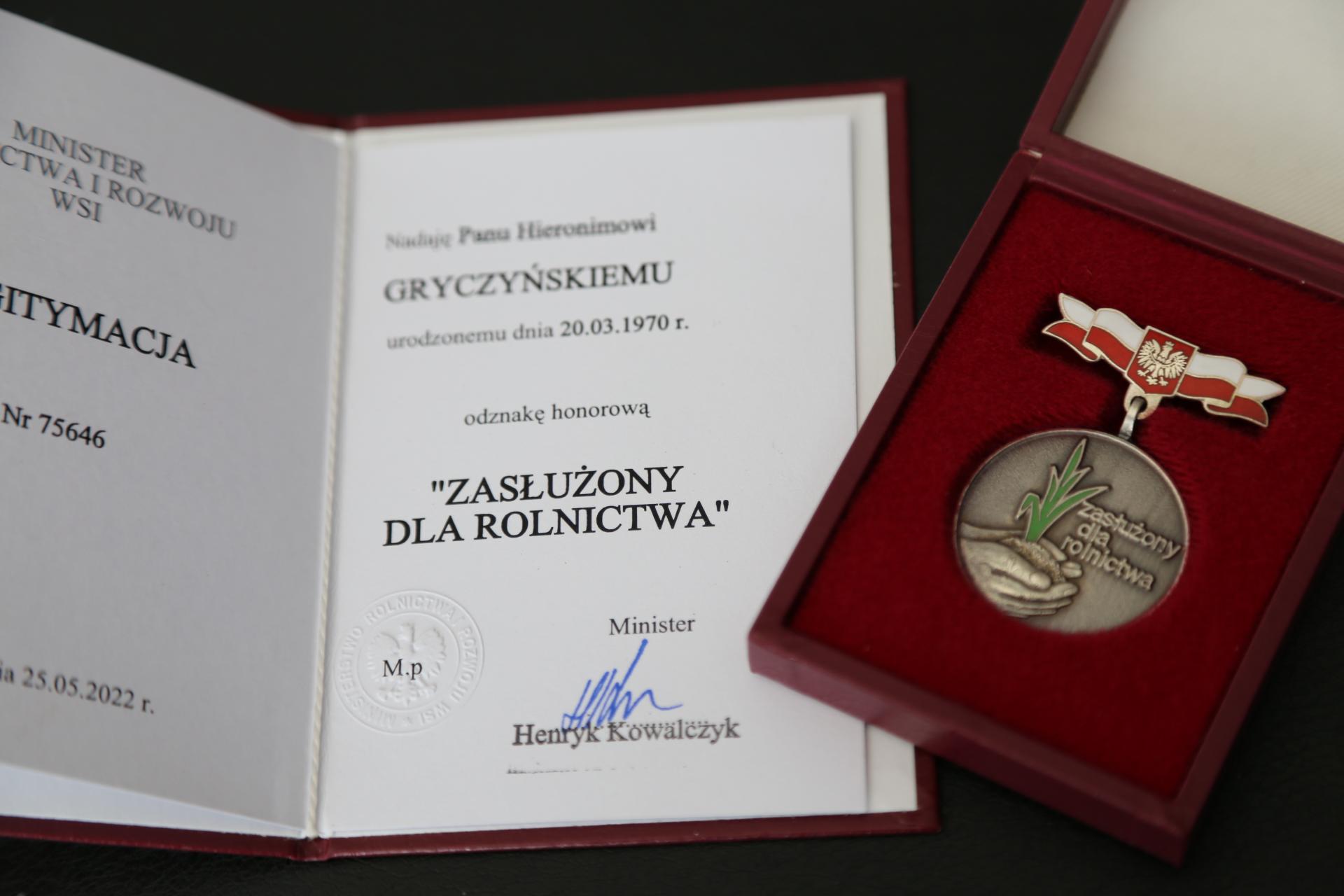 Na co zwracano uwagę? Z pewnością na rozwój gospodarstwa, działania proekologiczne, innowacyjność. Gospodarstwo w Latalicach ma nie tylko własną studnię, ale również stację uzdatniania wody. Na terenie gospodarstwa zamontowano fotowoltaikę, która zasila m.in. lamy doświetlające rozsady. Nie bez znaczenia było też piękne obejście gospodarstwa. – Ogród to już zasługa żony – chwali pan Hieronim. Nagroda za najpiękniejszą posesję przypadła pani Grażynie dwukrotnie – w roku 2012 i 2021. A w sierpniu br. Hieronim Gryczyński odebrał z rąk ministra rolnictwa honorową odznakę "Zasłużony dla rolnictwa".