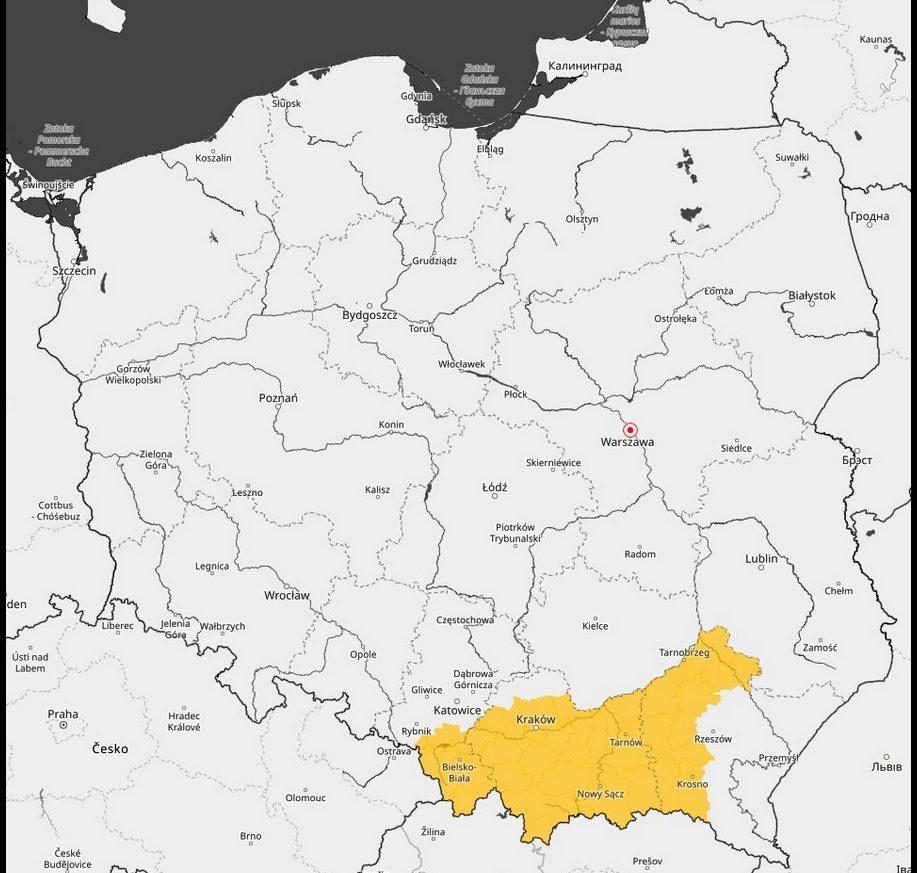 Dla południa Polski wydano ostrzeżenia meteorologiczne 1 stopnia dotyczące intensywnych opadów deszczu. Łączna suma opadów (w tym konwekcyjnych) może wynieść 30-45 mm.